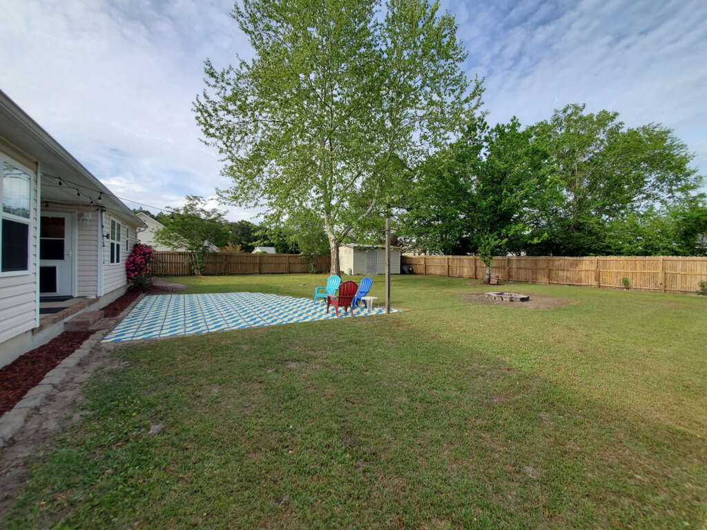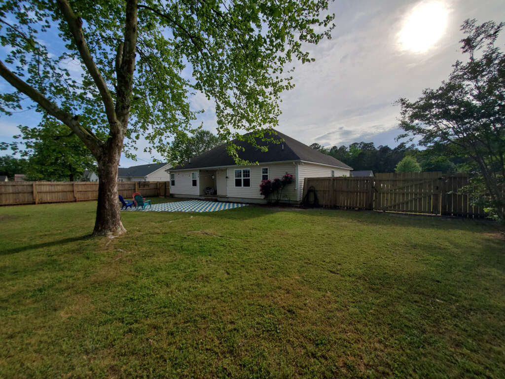 - Fenced-in back yard with privacy fence(perfect for your furry friends)
