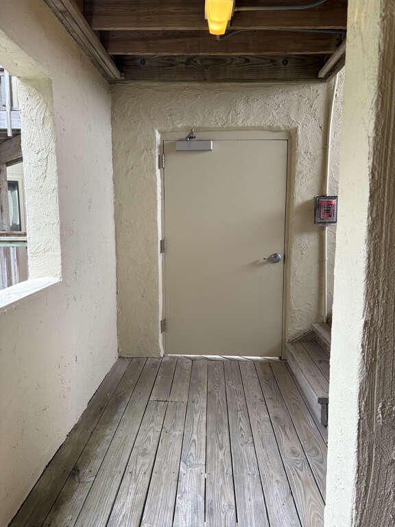 Two-bedroom condo vacation rental in Emerald Isle, NC with a private balcony, elevator access, and an oceanfront gazebo for easy beach entry.