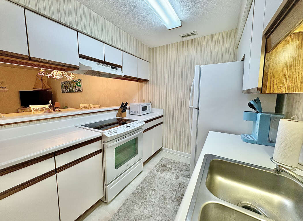 Experience the allure of the Crystal Coast in this spacious 2-bedroom, 2-bathroom condo nestled in the heart of the Emerald Isle. Queens Court, a secure gated community, offers a beautiful sun-drenched layout, enabling guests to relish in luxurious comfort. The convenience of the elevator is situated just a heartbeat away, ensuring seamless accessibility.