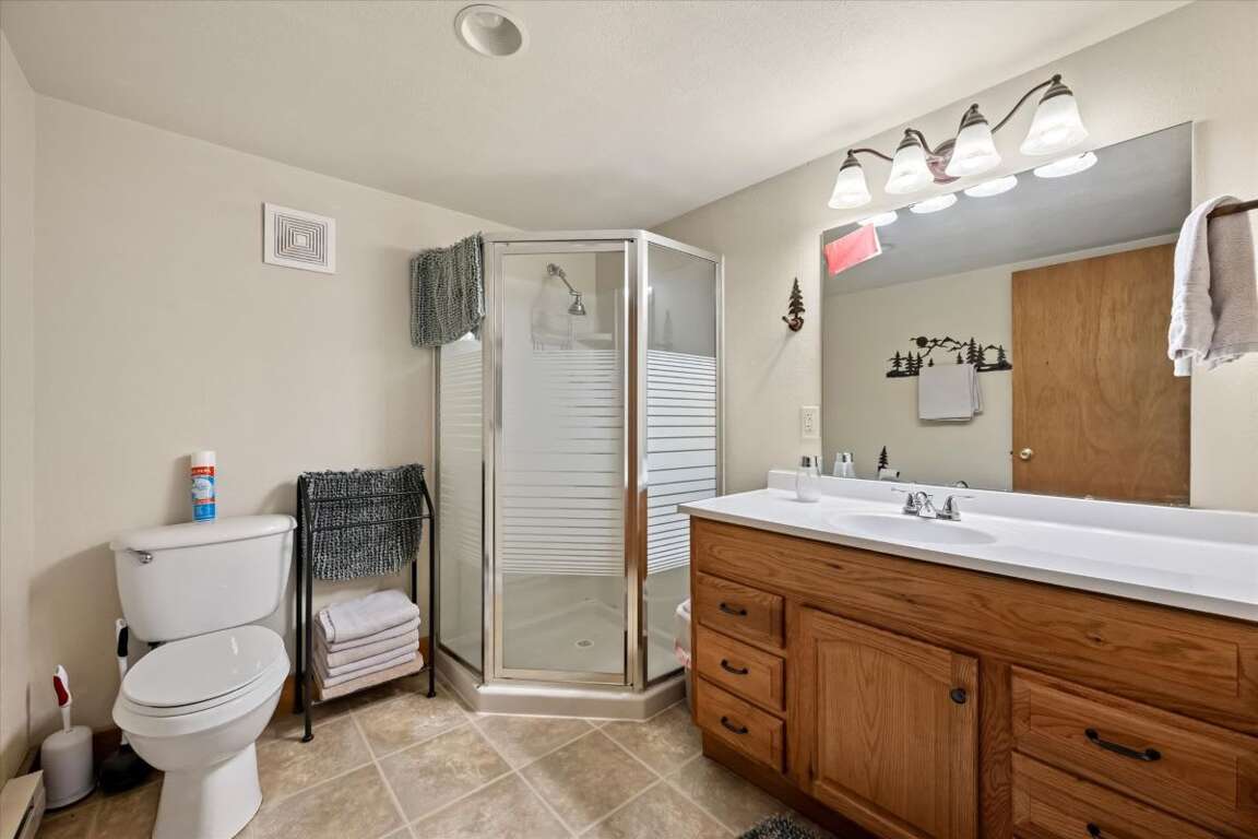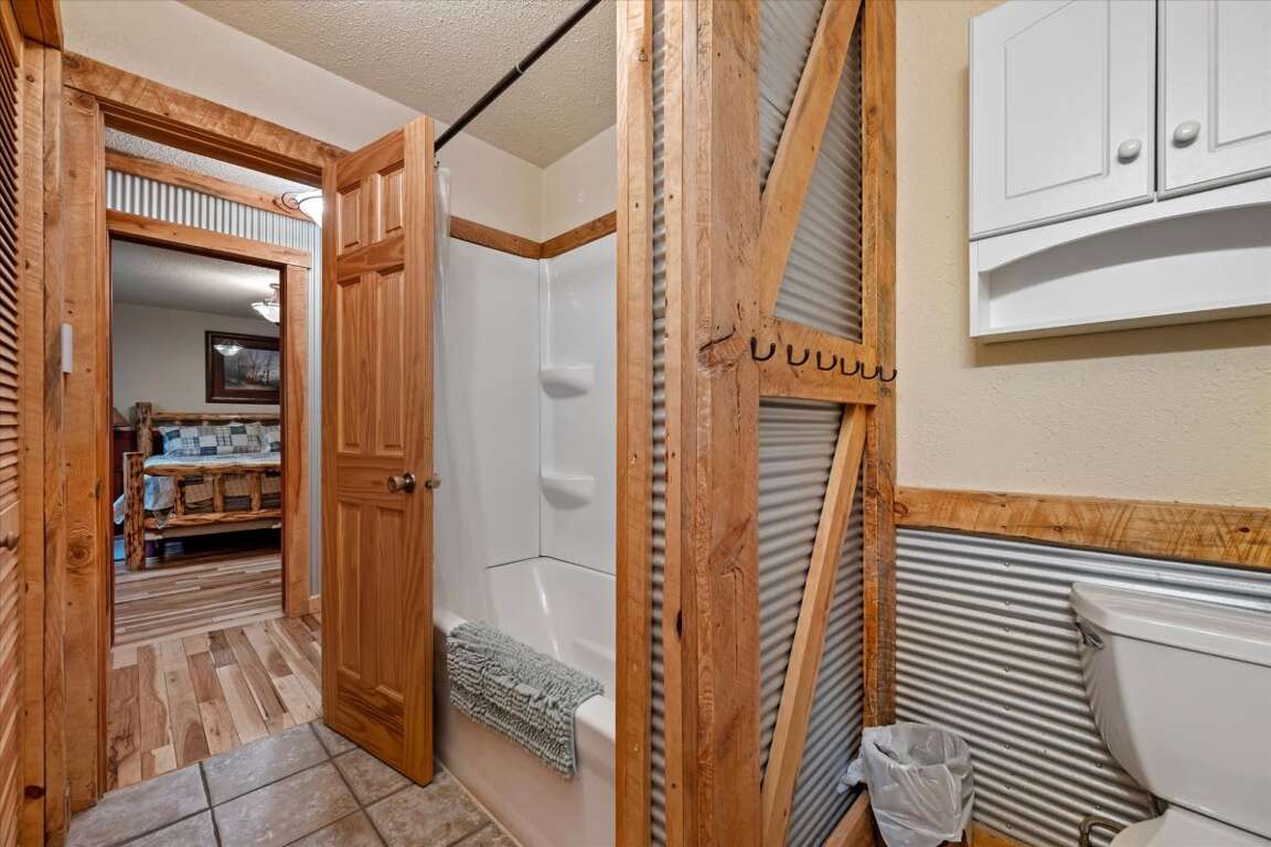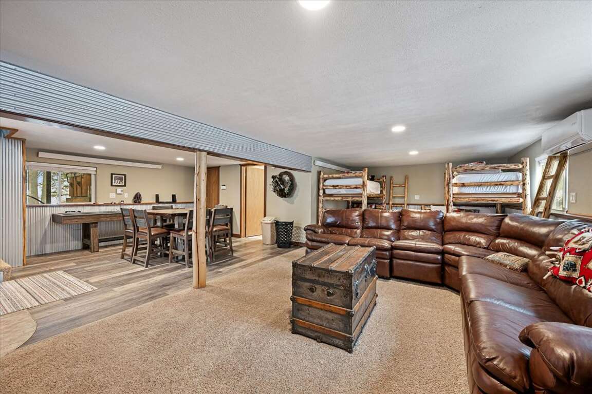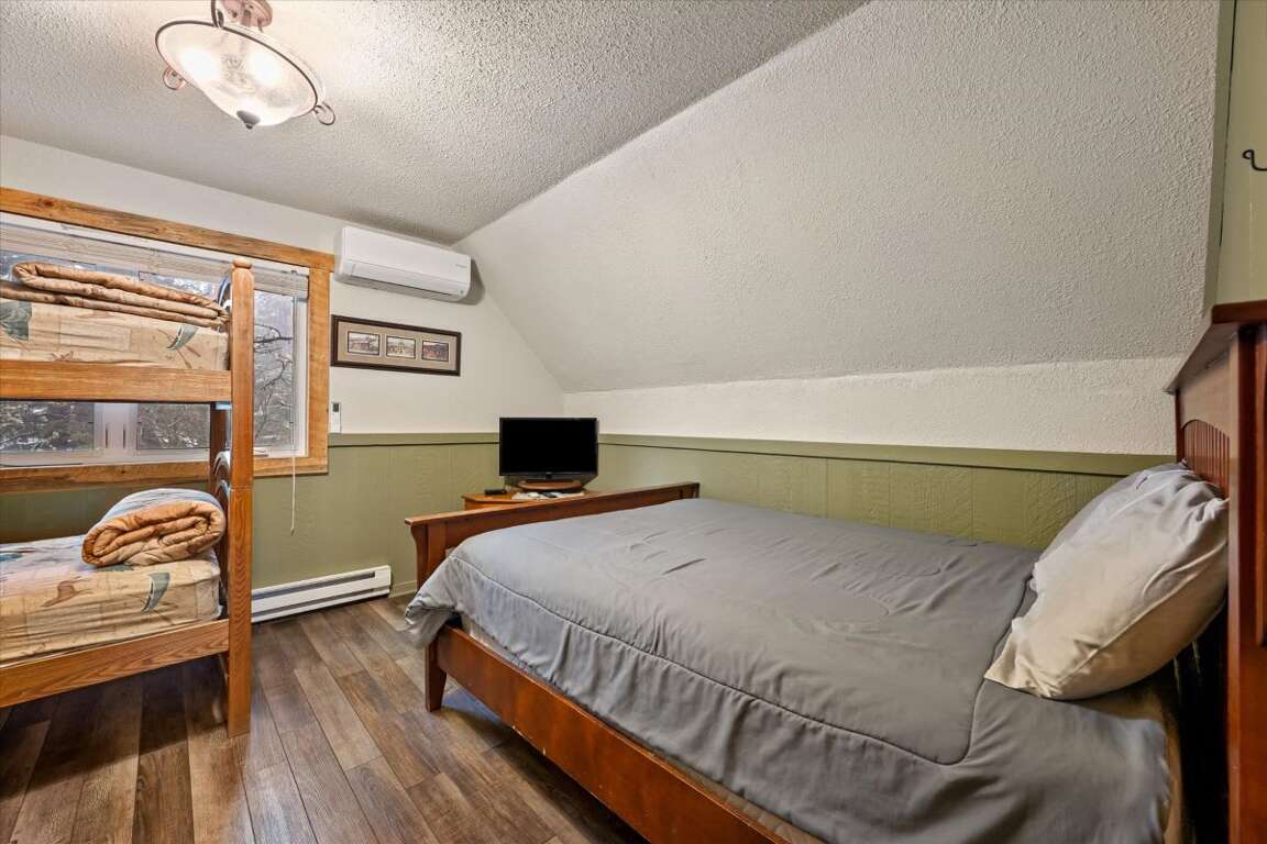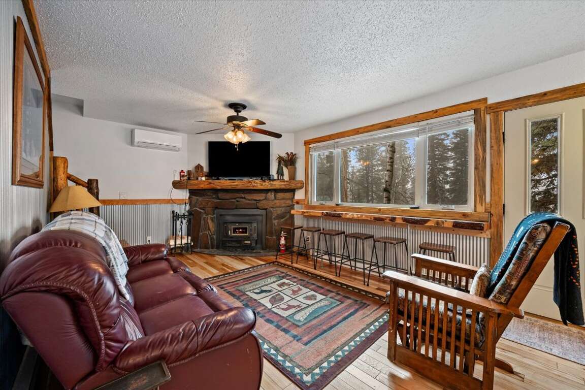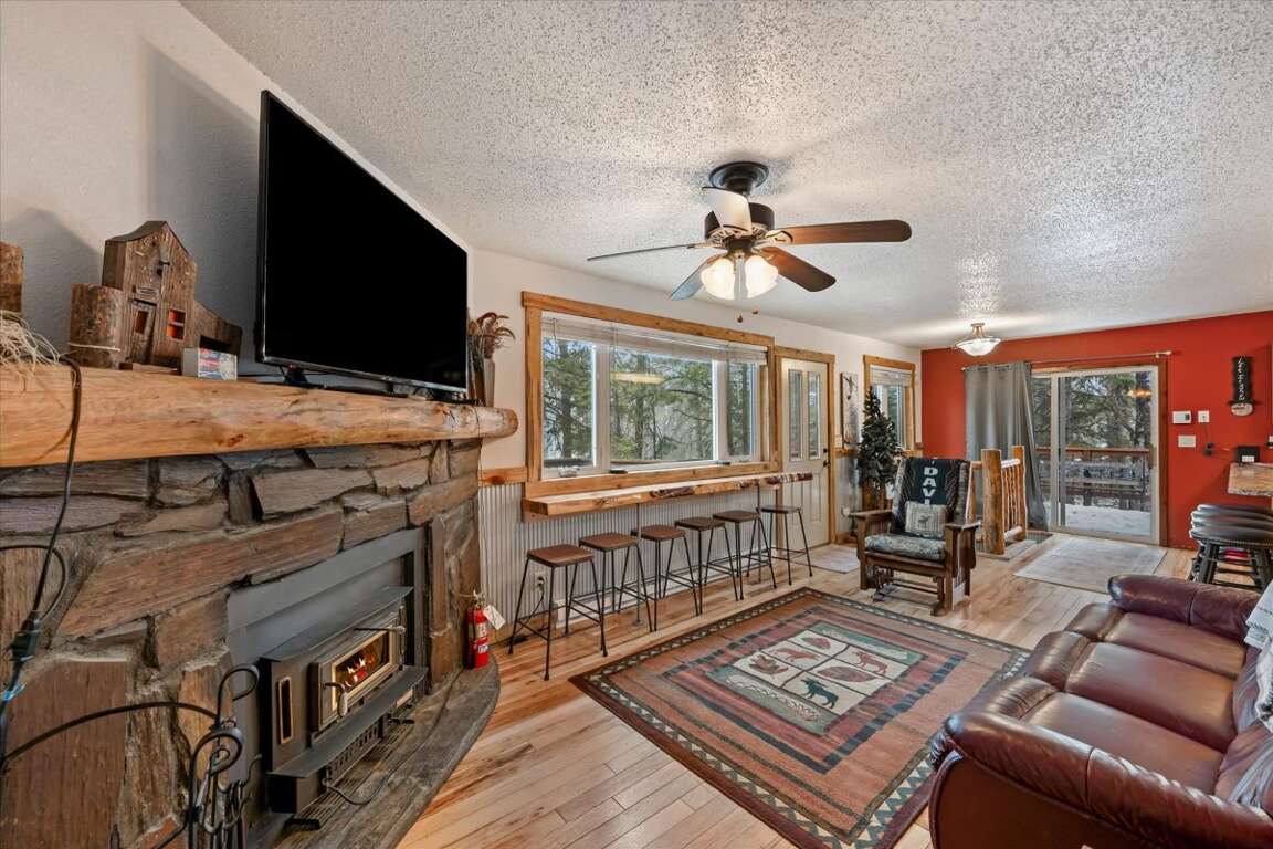 Favorite Features: Guests particularly enjoyed the woodsy touches with log furniture and pine trim, the open kitchen-living area with a wood-burning stove, and the cozy ambiance created by the gas fireplace in the lower level.