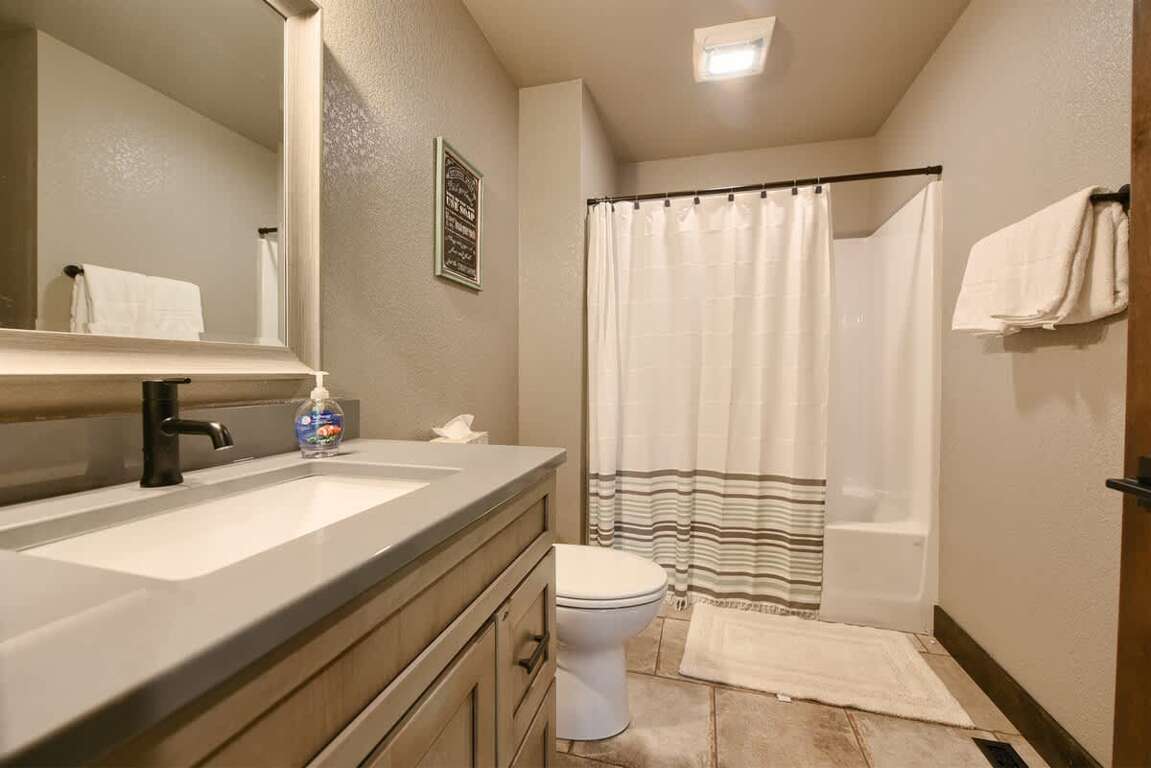 This is a very nice, clean cabin within walking distance from Terry Peak Lodge. We had 9 adults and 4 kids in this cabin with plenty of room and comfortable sleeping arrangements. The basement was a little chilly as the weather was fairly cold and there only being one heating zone in the house. There were extra blankets in the house that came in handy for those sleeping downstairs. With that being said though, I would still recommend this cabin to anyone and will rent again when time allows for another trip to Terry Peak.