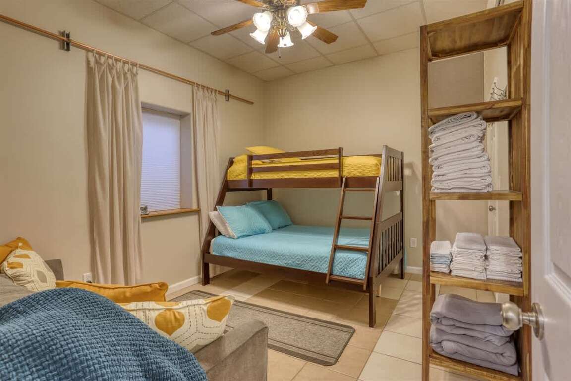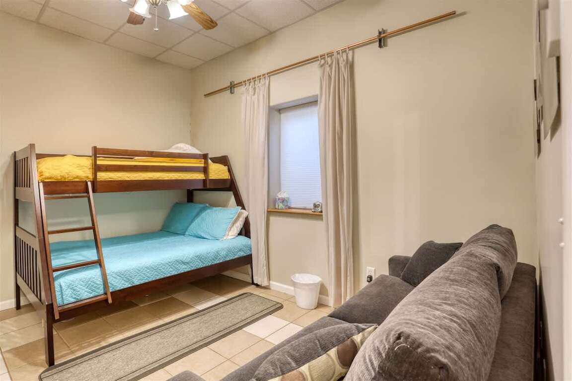 Located in a prime spot in Sturgis, this 5-bedroom short term rental offers a spacious and inviting retreat for up to 15 guests seeking comfort and convenience during their stay. The property boasts 3 full bathrooms and a variety of sleeping arrangements, including 1 King, 2 Queen, 2 Bunk Beds, and 2 Sofa Beds. With a living space of 2280 sqft, guests can enjoy ample room to relax and unwind. The home features an open floor plan on the main level, with 3 bedrooms and 2 bathrooms conveniently located there. Downstairs, a family room awaits with entertainment options for added fun. The property's layout guarantees privacy, making it an ideal choice for groups or families.