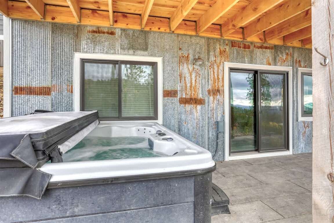 - Features a private hot tub, deck, and gas grill.