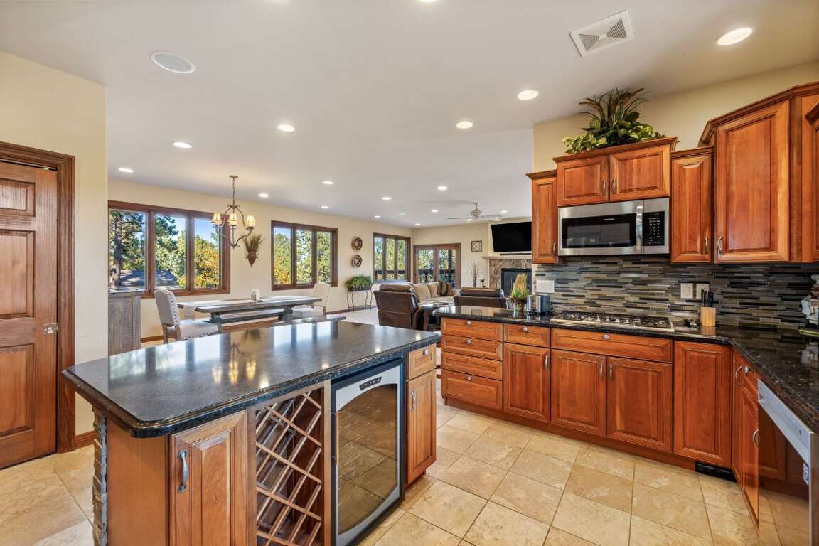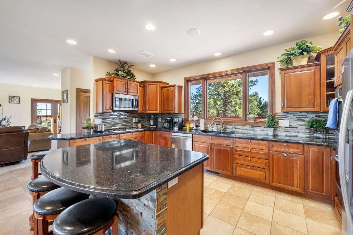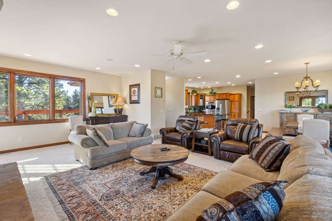 The Highland Hilltop Retreat in Rapid City, South Dakota boasts a range of luxurious amenities and features for guests to enjoy during their stay. The interior design of this vacation home is elegant and inviting, with a spacious living area, modern kitchen, and cozy dining space. Guests can unwind in the beautifully decorated bedrooms featuring comfortable queen beds and stylish furnishings. Regarding entertainment options, the property offers a well-equipped game room on the lower level, providing hours of fun for guests of all ages. Whether relaxing by the fireplace in the living room or enjoying a friendly game downstairs, the Highland Hilltop Retreat guarantees a memorable and entertaining stay for all who visit.