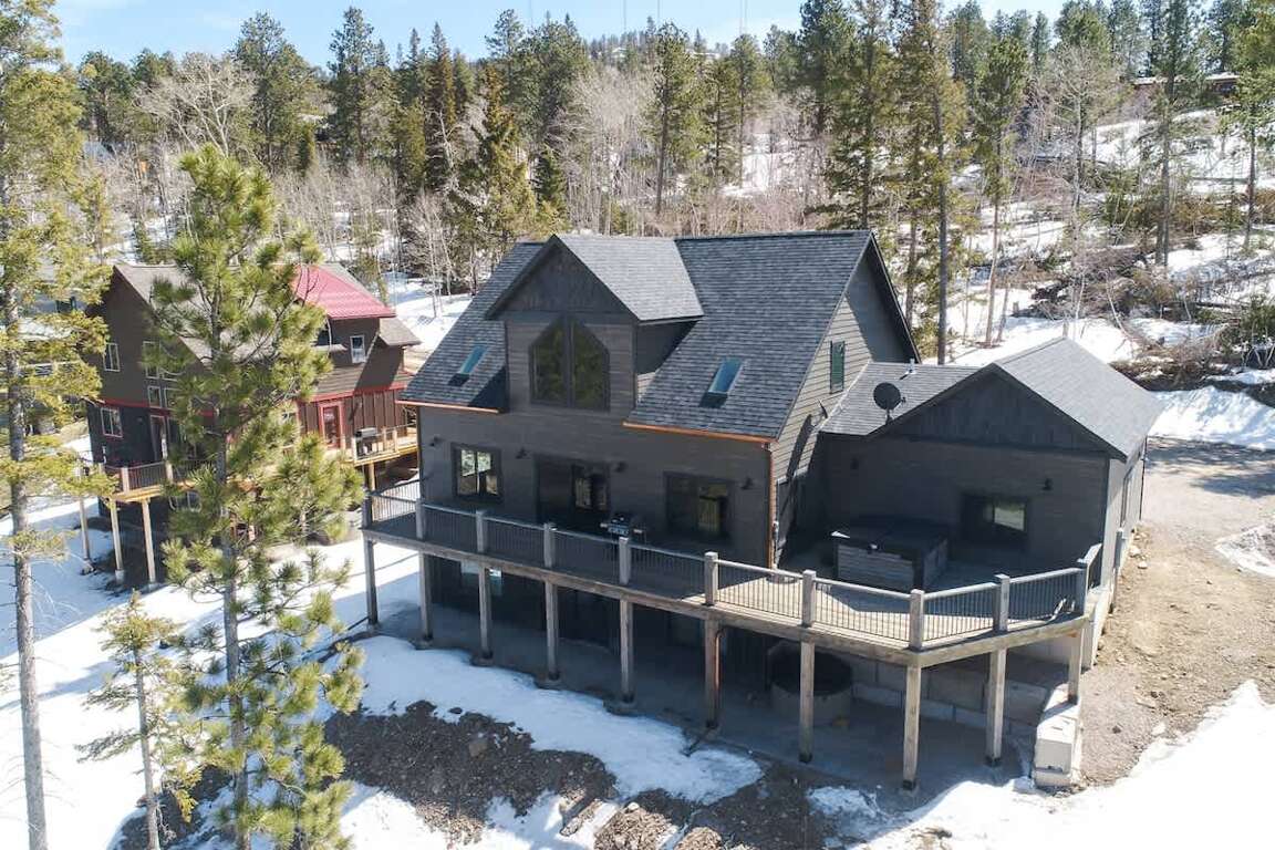 Highlighted by its three levels of custom construction, the vacation home in Terry Peak, South Dakota, offers an array of luxurious amenities and comfortable accommodations for guests seeking a memorable mountain retreat. This property is the perfect base for mountain adventures, with its proximity to skiing/snowboarding and ATV/snowmobile trails. Guests can unwind and enjoy outdoor relaxation on the expansive deck and patio areas, complete with two 5-man hot tubs offering scenic views. The main floor master King bedroom with an attached bath provides a luxurious retreat, while the lower level boasts three bedrooms, a full bathroom, wet bar, and a family room for social gatherings. Whether seeking adventure or relaxation, this vacation home caters to all needs.