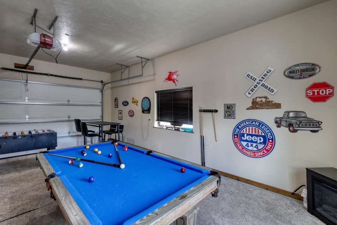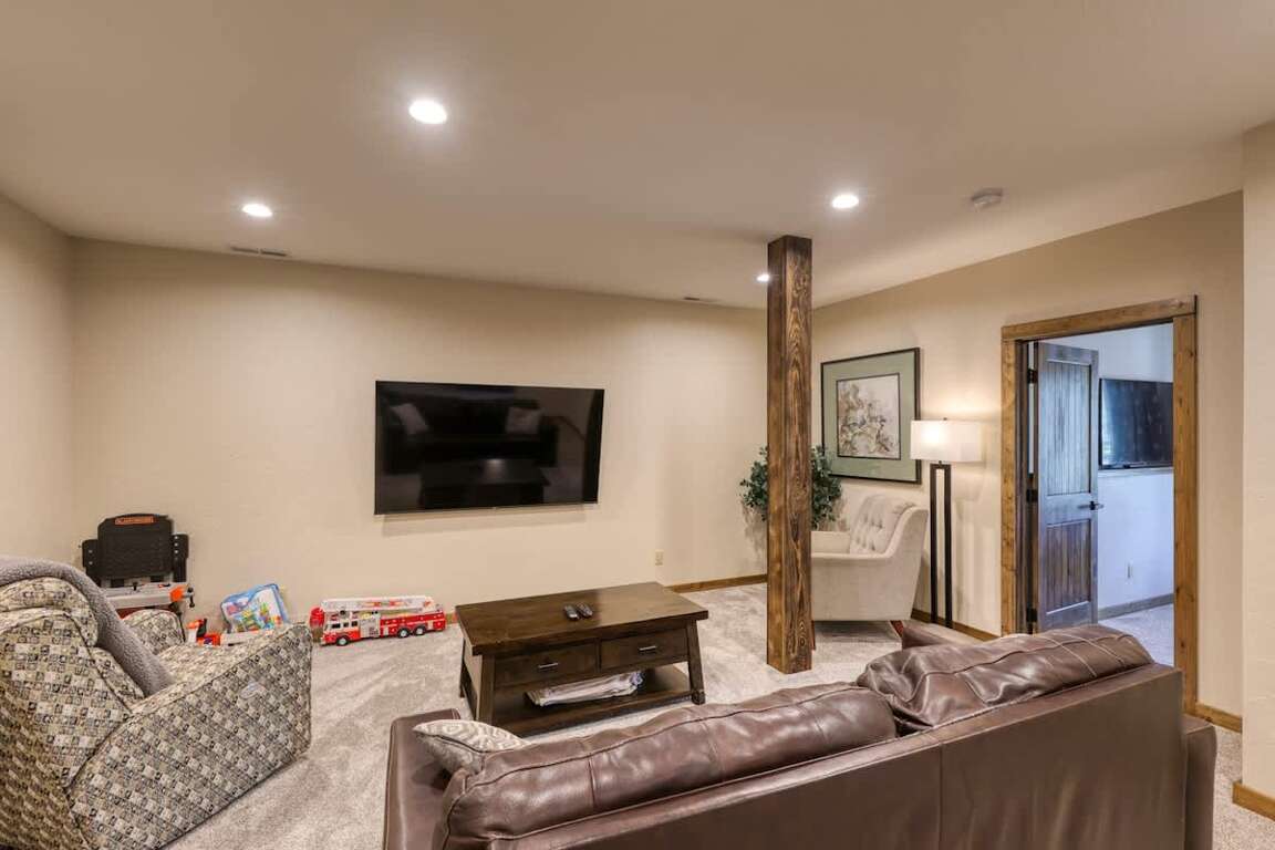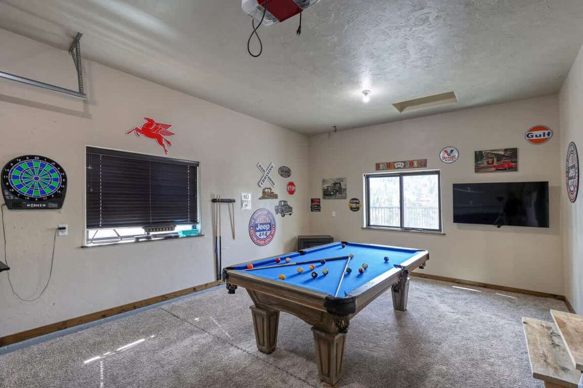 Among the top amenities offered at the 6-bedroom vacation home in Terry Peak, South Dakota, are expansive deck and patio areas, complemented by two 5-man hot tubs with scenic views. The hot tubs provide a perfect setting for relaxation under the stars, offering a soothing retreat after a day of outdoor adventures. Additionally, guests can enjoy game room fun, with entertainment options that cater to both kids and adults. The game room is equipped with various activities, ensuring that everyone can unwind and have a great time indoors. Whether soaking in the hot tubs or engaging in lively game room activities, these amenities enhance the overall experience at 'The Nitz Carlton,' making it an ideal retreat for groups seeking relaxation and fun.