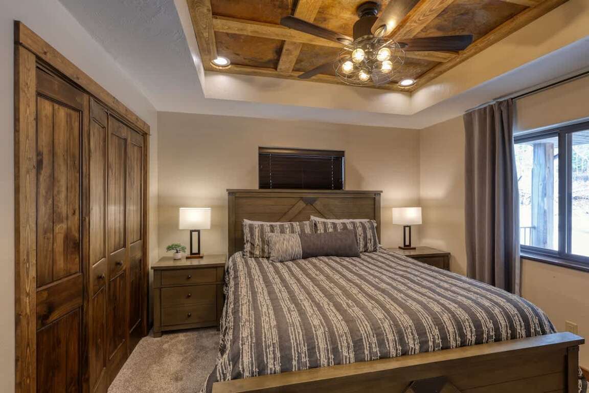 - Ideal for large groups with main floor master King bedroom and attached bath.