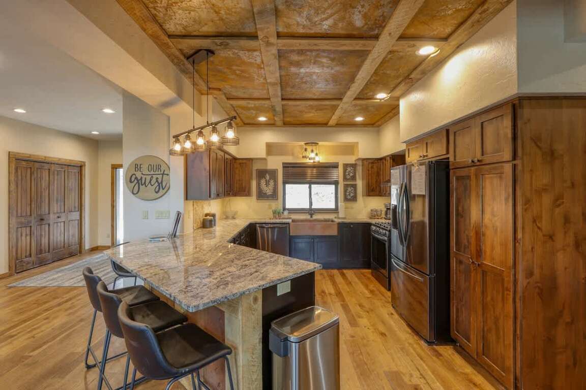 The guest reviews for this 6-bedroom vacation home in Terry Peak, South Dakota, highlight the comfort and satisfaction experienced by visitors during their stay. Guests have praised the variety of room configurations, finding the 6 separate bedrooms ideal for multiple couples and large groups. The house's cleanliness, condition, and attention to detail in finishes, fixtures, and decor have received positive feedback. The customer service provided was exceptional, with many guests appreciating the prompt responses and attentiveness of the property management team. Visitors enjoyed the spacious layout that offered privacy and comfort, along with the stunning views and the entertainment provided by the game room. Overall, the Nitz Carlton at Terry Peak has left guests impressed and satisfied with their stay.