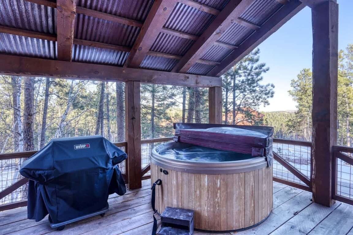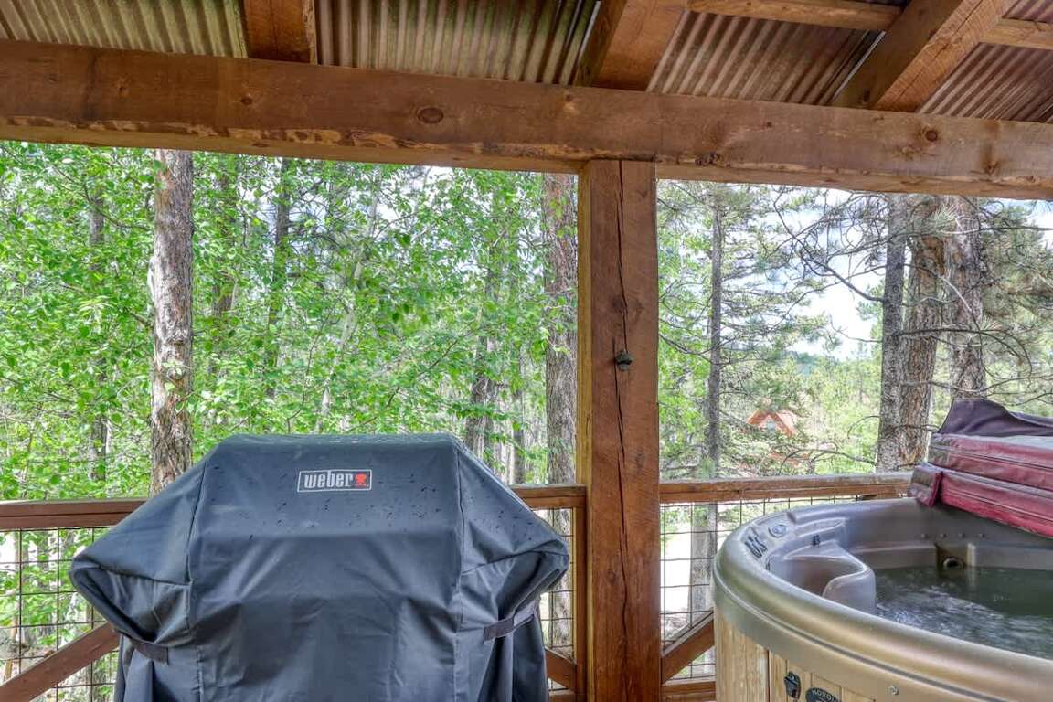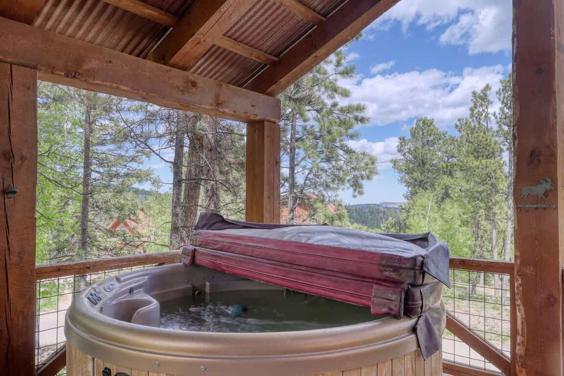 This 5-Star Black Hills Cabin Rental has its own hot tub in Gilded Mountain.