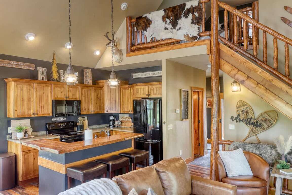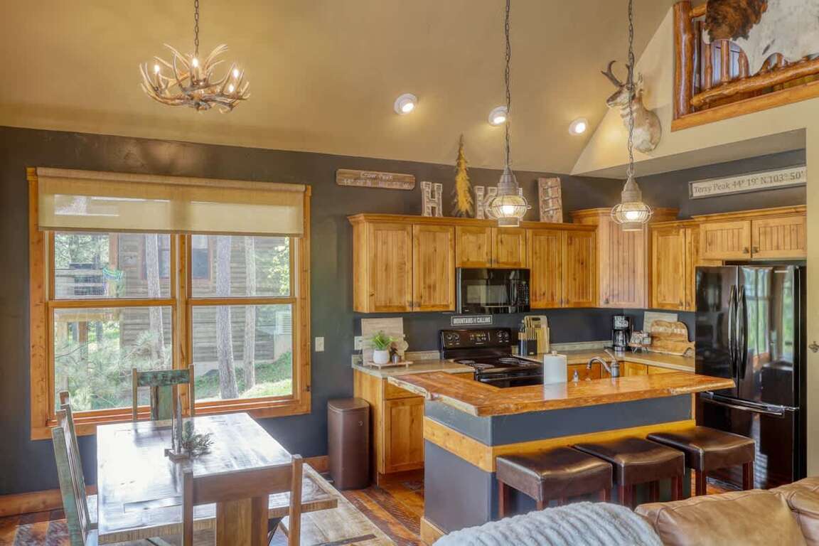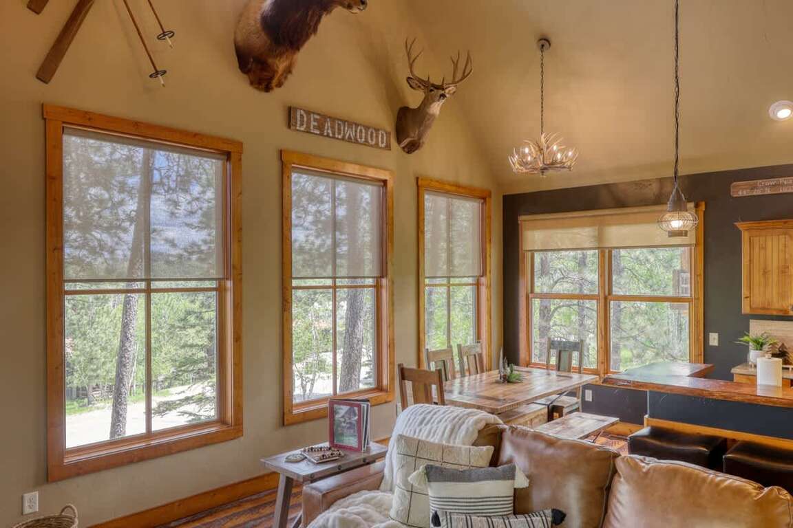 Located in the desirable Gilded Mountain Community near Deadwood, South Dakota, this 4 bedroom cabin offers the perfect space for families of all sizes to enjoy the outdoors. Up to 10 guests can relax comfortably, and enjoy the wonderful views off the back deck. It's beautiful scenery and quiet privacy of The Black Hills, spacious main living area with wood-burning fireplace & beautiful picture windows make it one of our more popular vacation homes.