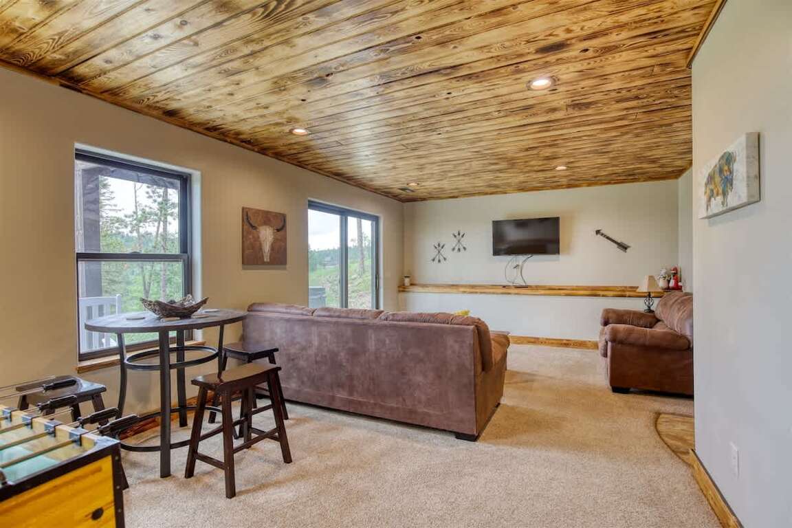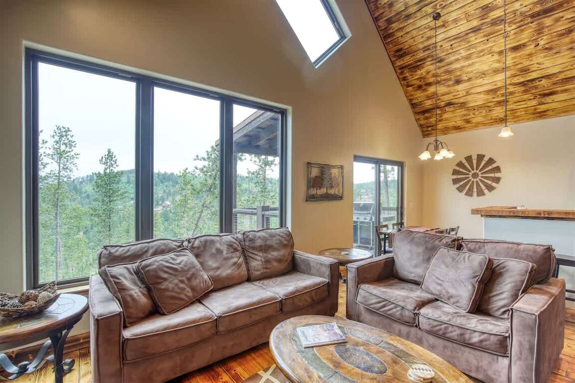Nestled in the sought-after Terry Peak area, Rolling Pines Overlook blends modern comfort with rustic charm, offering guests the perfect balance of relaxation and outdoor adventure. Just minutes from skiing, hiking, and historic attractions, this 3-bedroom + loft home features an inviting open floor plan, stunning wood finishes, and breathtaking mountain views from every level.