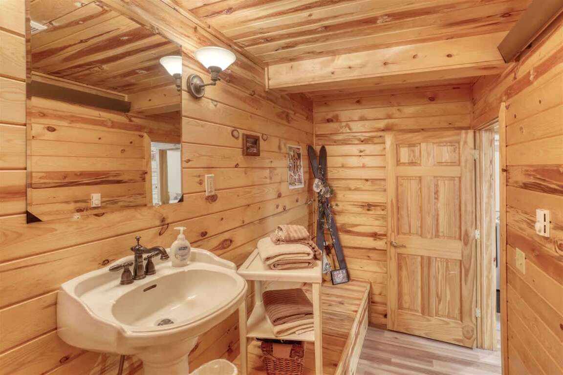 This luxurious ski retreat is both cozy and spacious, with beautiful log furniture and warm cabin accents that make you feel right at home. The main level features an inviting living area with a gas fireplace, a fully equipped kitchen, and a dining space that opens onto a deck with breathtaking views. Step outside to grill dinner or soak in the private hot tub surrounded by pines.