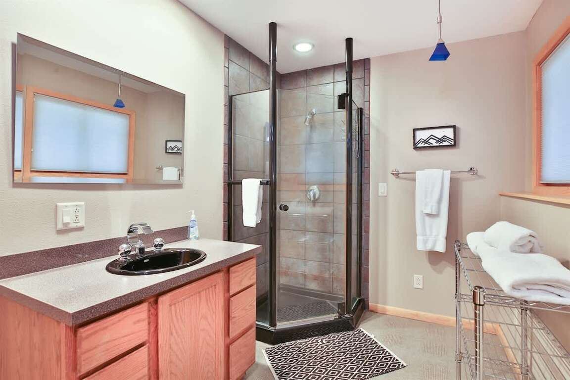 This gorgeous 3-level vacation home has 3,500 square feet with 5 bedrooms, 3 very unique full baths, with one on each level.