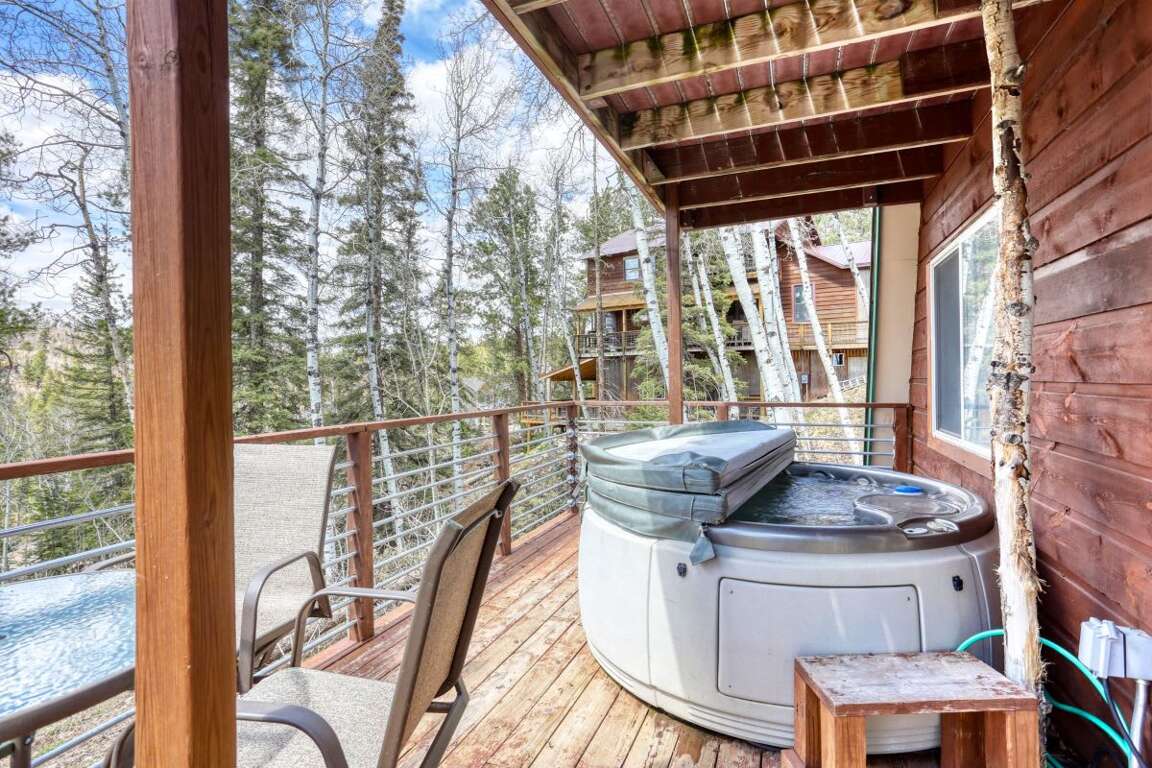 ■ Outdoor Living Space: Sliding doors open to the lower deck with more seating and your own private hot tub with incredible mountain views