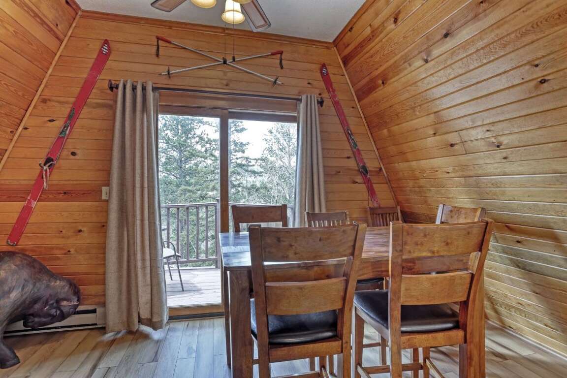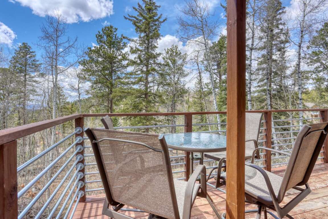 ■ Outdoor Living Space: Sliding glass doors open to a spacious deck with stunning mountain views, BBQ grill, and patio seating for meals or relaxation in the fresh Black Hills air.