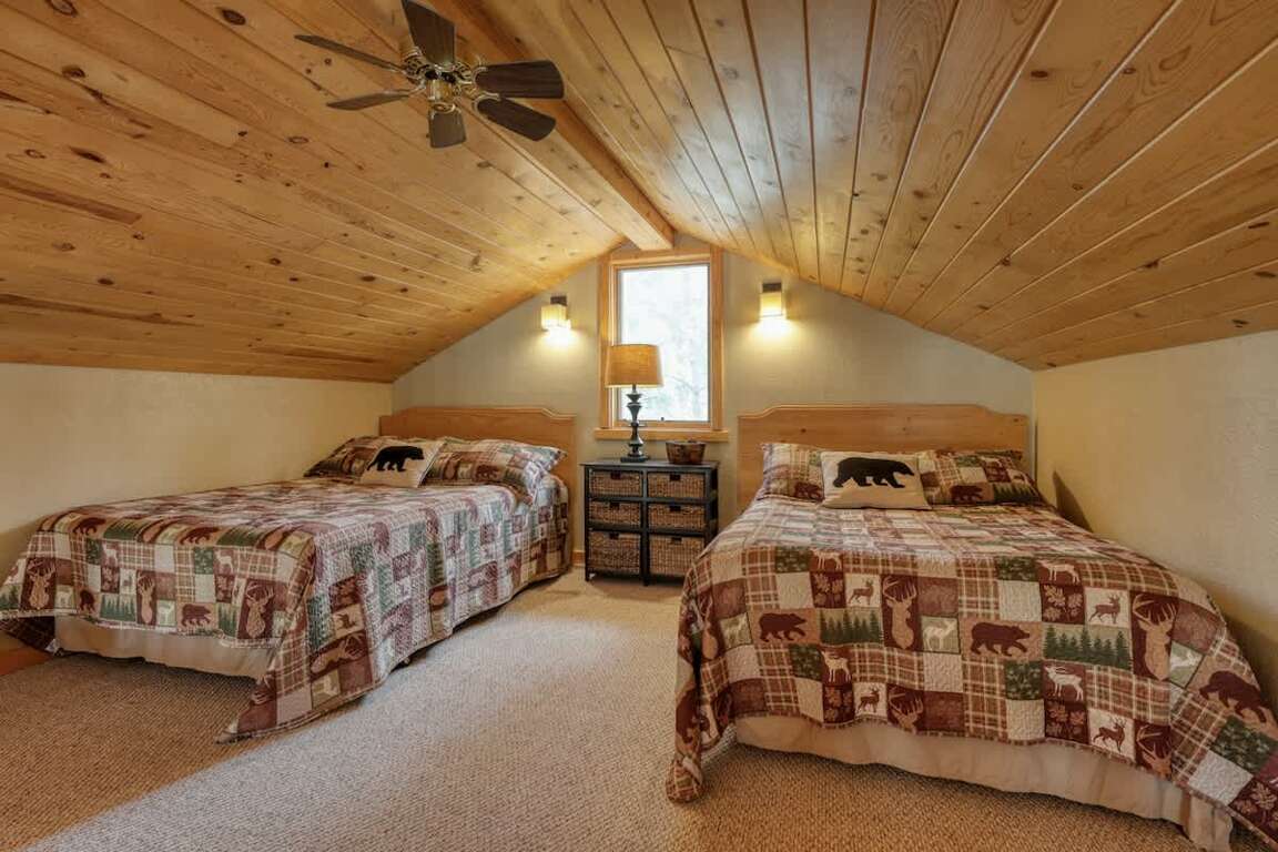 Located in the serene setting of Terry Peak, Serenity Ridge Retreat is an 850-square-foot vacation cabin offering a tranquil escape for up to six guests. This cozy cabin boasts a hot tub and a charming wraparound deck, perfect for unwinding and taking in the surrounding beauty of the Black Hills. The main level includes a bedroom, bathroom, kitchen, and a living room with a gas fireplace, providing a cozy atmosphere for relaxation. Additionally, the upstairs loft features two double beds, ensuring ample sleeping space for guests. Guests can explore nearby attractions such as the historic town of Deadwood, hiking trails, and mountain biking routes, making Serenity Ridge Retreat an ideal base for outdoor adventures and peaceful retreats.