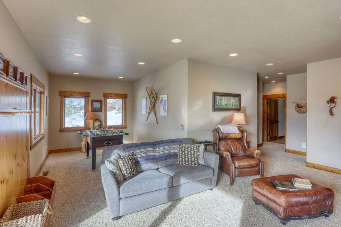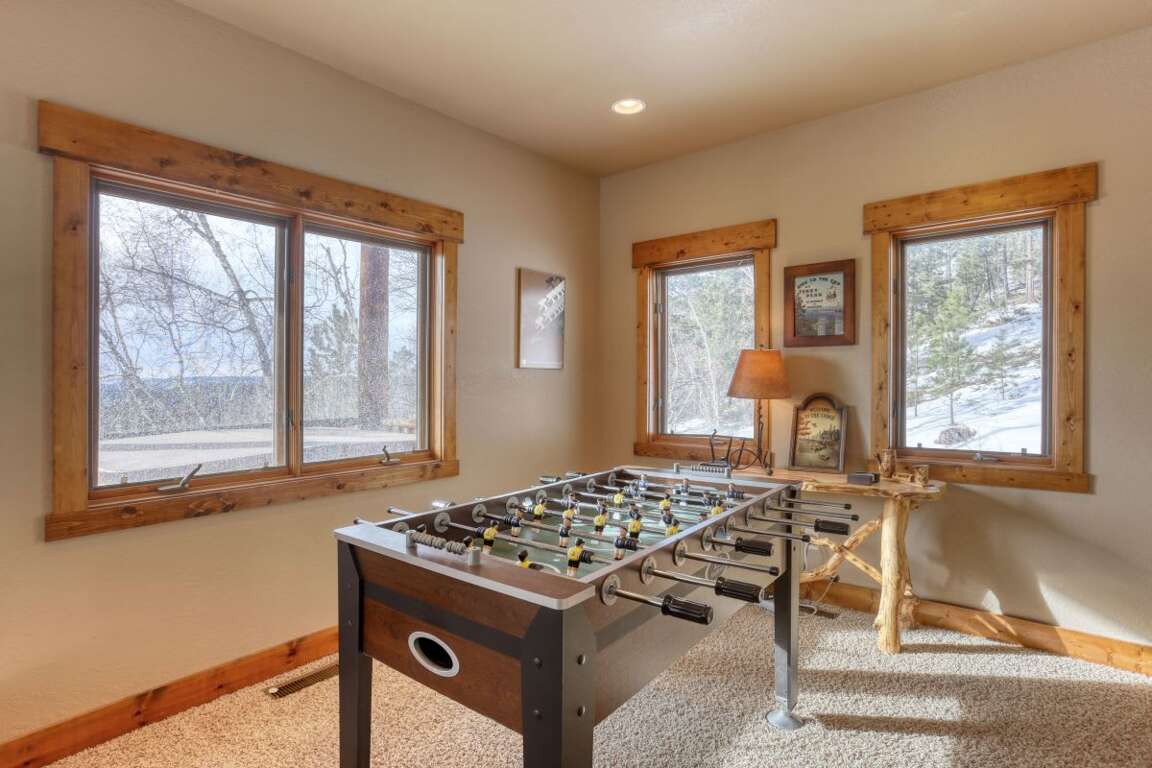 ■ Spacious family area with walk-out access, comfortable seating, and additional entertainment options including a foosball table.