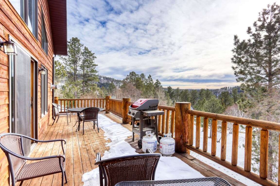 ■ Outdoor Living Space: Relax on the deck or patio with private hot tub and propane BBQ grill, all while enjoying breathtaking views of the surrounding Black Hills.