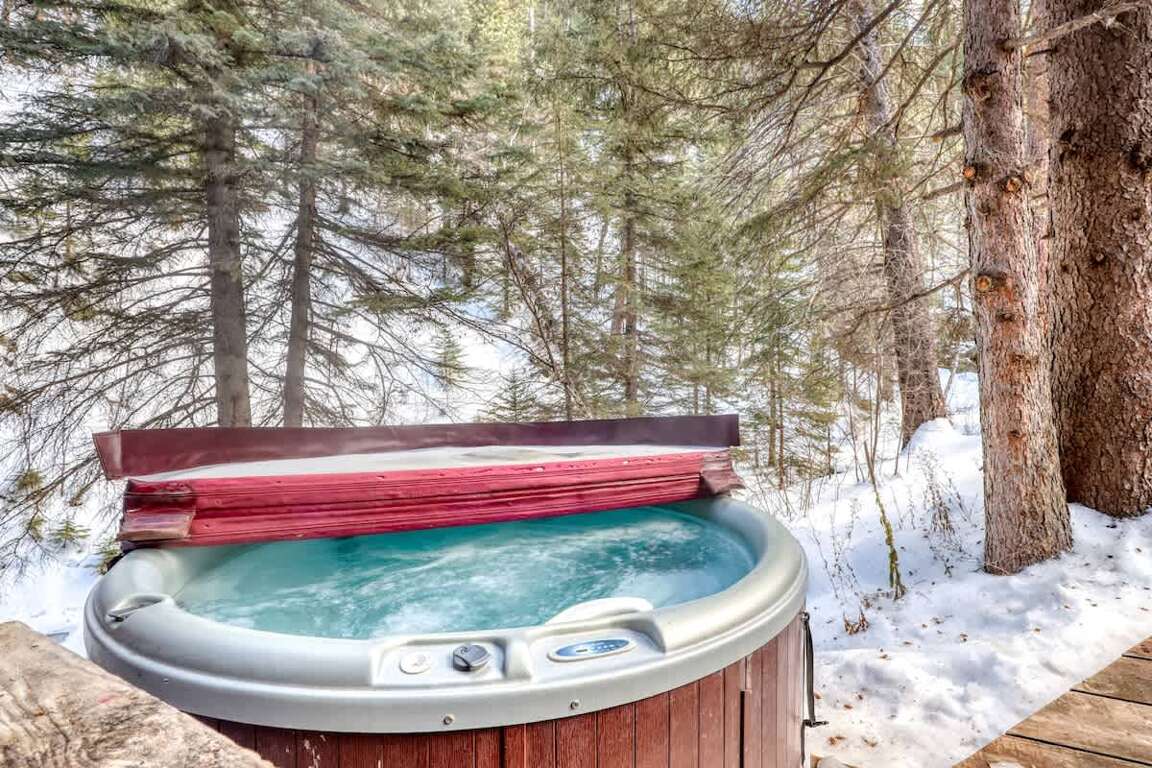 - Features a hot tub with mountain views and a beautiful Creek off the deck.