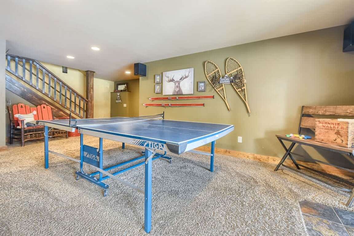 Family TV Room: This inviting entertainment space includes a couch and loveseat, electric fireplace, flat-screen TV, board games, ping-pong table, dart board, pub table for 2, and a wet bar with mini-fridge. It’s the ultimate setting for game night or movie marathons.