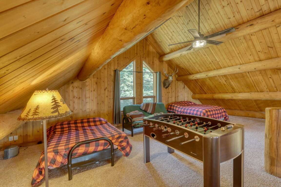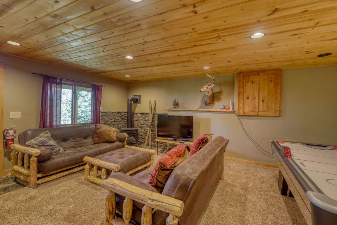 Discover the array of charming and practical amenities that elevate the experience at Deer Haven Lodge in Terry Peak, South Dakota. Unwind in the hot tub while taking in the panoramic scenic views surrounding the property. The loft offers entertainment with a TV, DVD player, and cozy futons, perfect for relaxing evenings with loved ones. Enjoy the cozy charm of the lodge with a large fireplace, creating a warm and inviting atmosphere. The lower level family suite includes games, another fireplace, and a TV for more entertainment options. Conveniently located near Terry Peak Ski Area, Deadwood, and Sturgis, Deer Haven Lodge provides the perfect escape for those seeking relaxation and adventure.