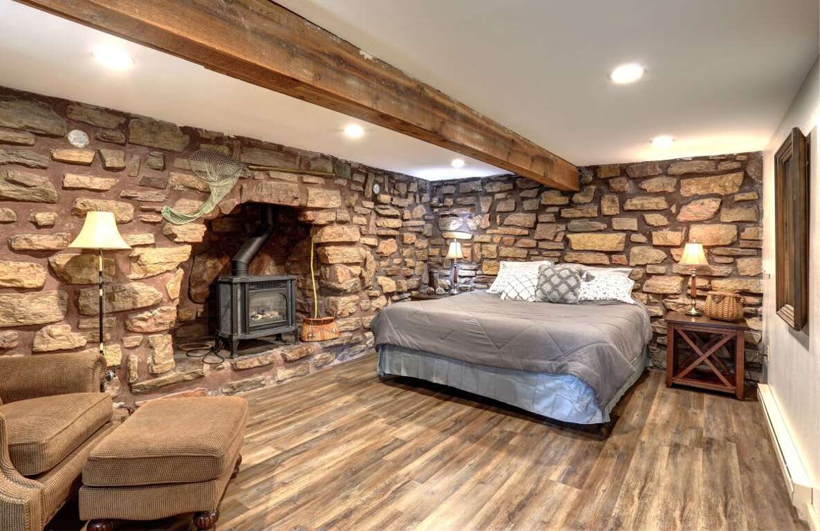 ■ Master Suite & Gas Stove: Spacious lower-level living area with a gas stove, perfect for cozy evenings.