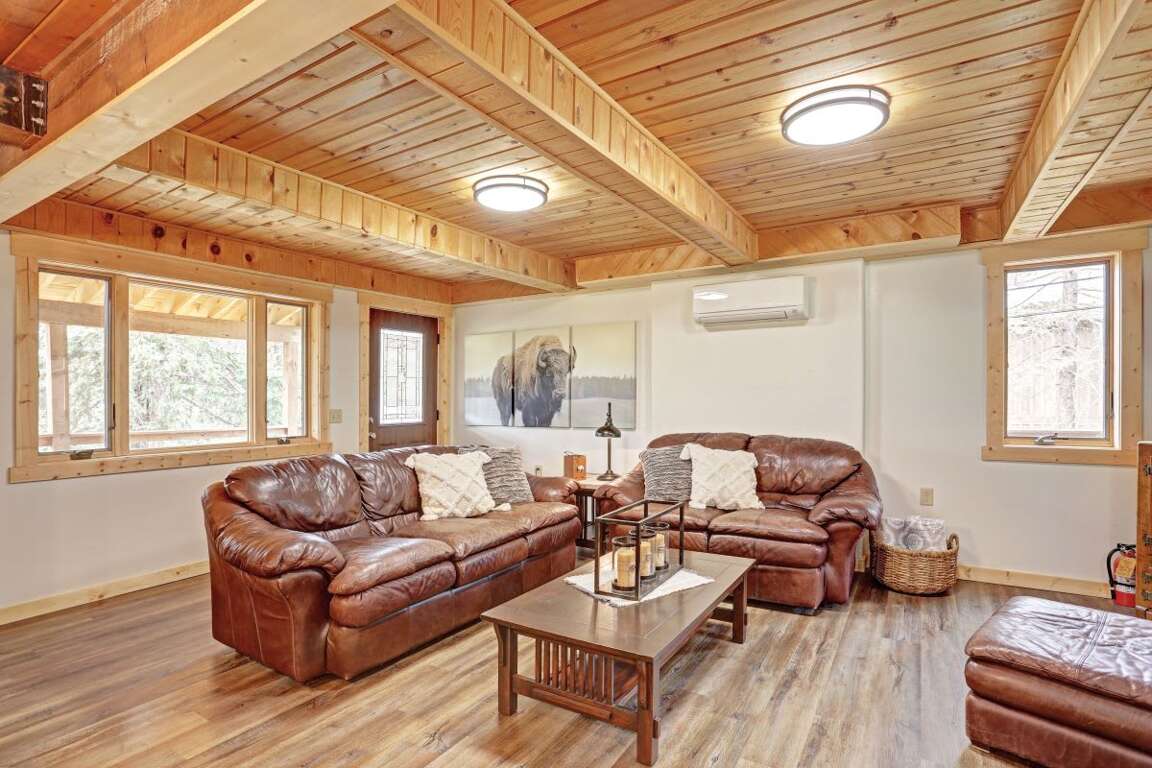 Located in the desirable Terry Peak Subdivision near Deadwood, South Dakota, Trail Mountain Cabin is a 3-bedroom + loft retreat perfect for families and groups of up to 10 guests. With spacious double decks, a wraparound deck, large picture windows, and an open-concept main living area, this cabin offers stunning mountain views and all the comforts of home.