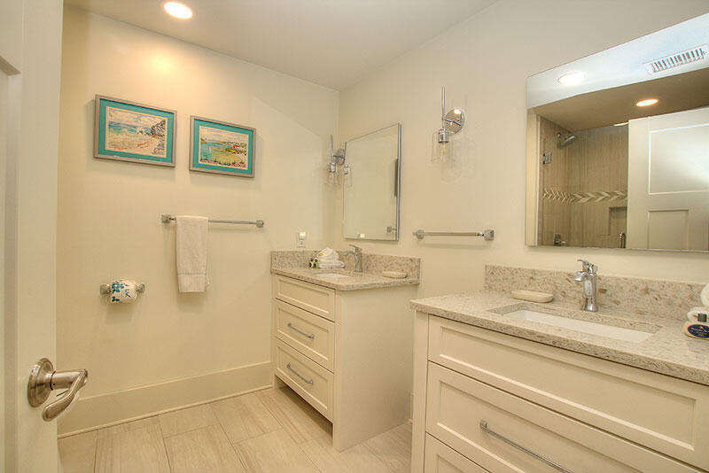 This charming villa offers spectacular views of the beach and Sound. The Master bedroom has a King bed, the guest bedroom has two queen beds and both have private baths with double vanities. The master bath features a walk-in shower and the guest bedroom features a shower/tub combination. The living room and both bedrooms have televisions, and wireless internet service is included. Stunning improvements (2020) as reflected in the photo gallery include all new flooring, redesigned kitchen and baths, new appliances and fixtures.