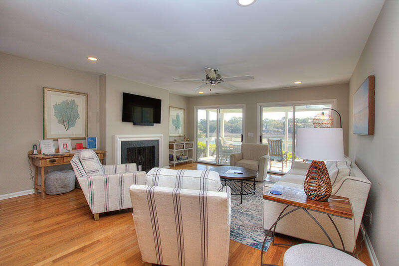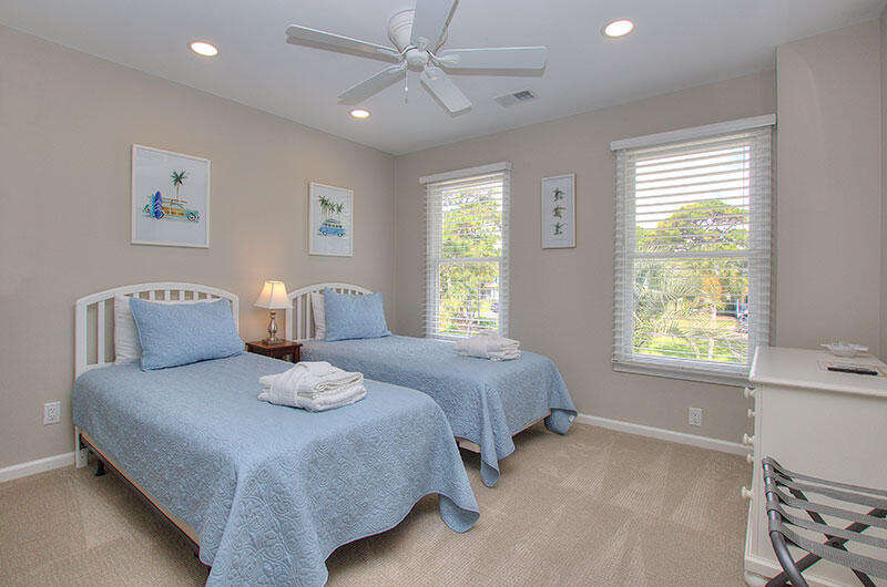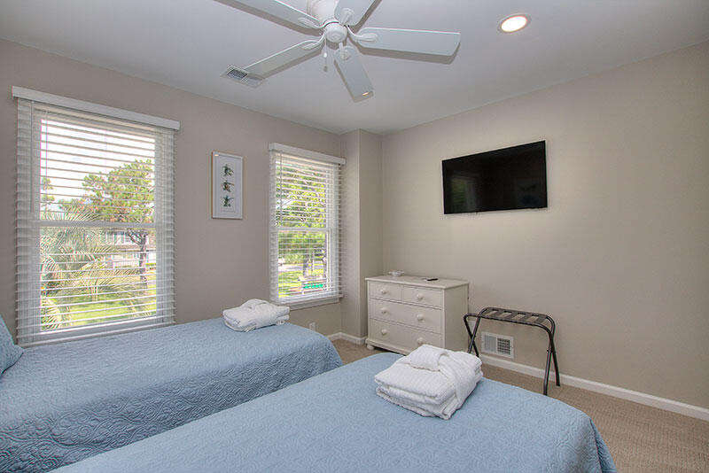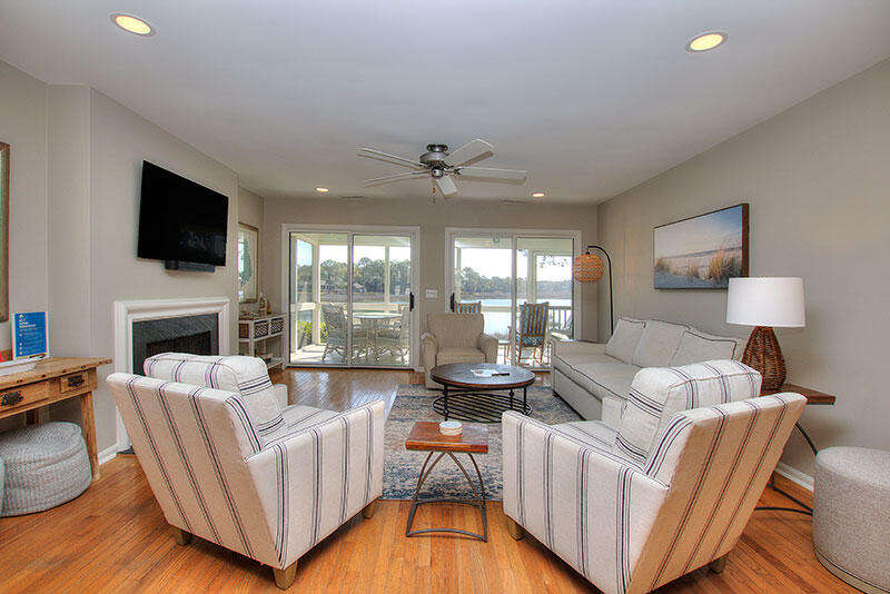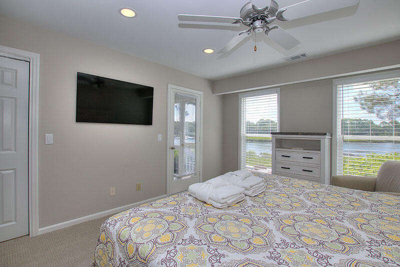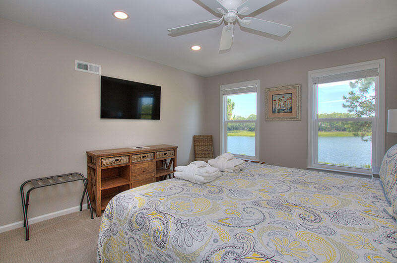 8 Lands End Court features 4 bedrooms, 4 full baths and bedding for up to 8 guests, along with a furnished screened porch, sun deck with gas grill and gorgeous water views of Braddock Cove, which connects South Beach Marina to the Calibogue Sound. Bedrooms include a King bedroom with water view and full bath on the 1st floor, guest bedroom with 2 Twin beds and full bath on the 1st floor, King bedroom with full bath and water view on the 2nd Floor and a guest bedroom with 2 Twin beds and a full bath on the 2nd floor. The home offers free Wifi and there are 5 TVs in the living room and all 4 bedrooms.