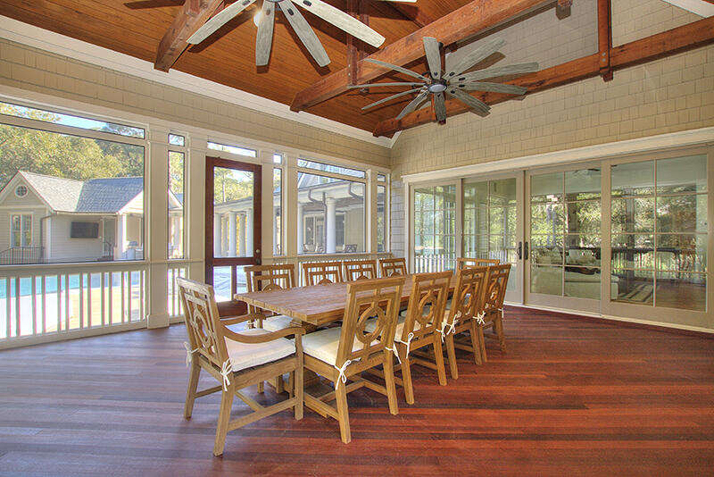 206 N. Sea Pines Drive is a resort unto itself with state of the art amenities including the gourmet kitchen, home theater with luxury seating, recreation room with sofas and large TV, office, screened porch with dining table, chairs and TV, cabana bar with TV and gas grill, covered walkways lined with columns and large infinity pool with underwater seating and built-in Spa.