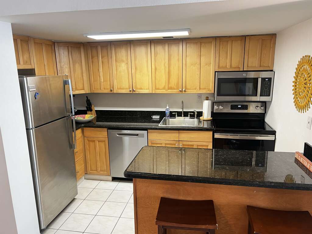 -Fully Equipped Kitchen: The kitchen comes fully stocked with appliances and ample counter space needed to prepare delicious meals. The adjacent dining area seats four comfortably, making it perfect for family dinners or entertaining guests. There is a Keurig and drip coffee machine.