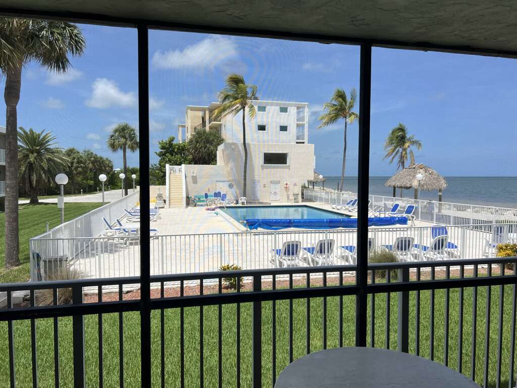 Coastal Charm is a 2-bedroom, 2-bathroom condo in Marathon, FL. This condo has a screened patio with ocean and pool views and access to a large swimming pool.