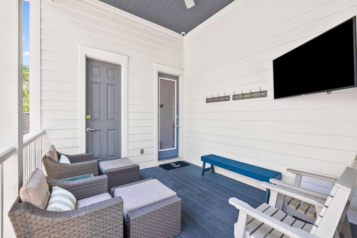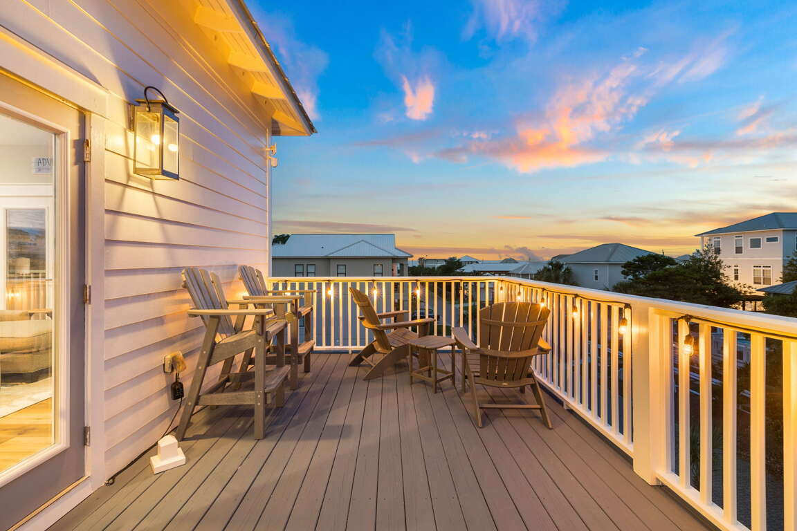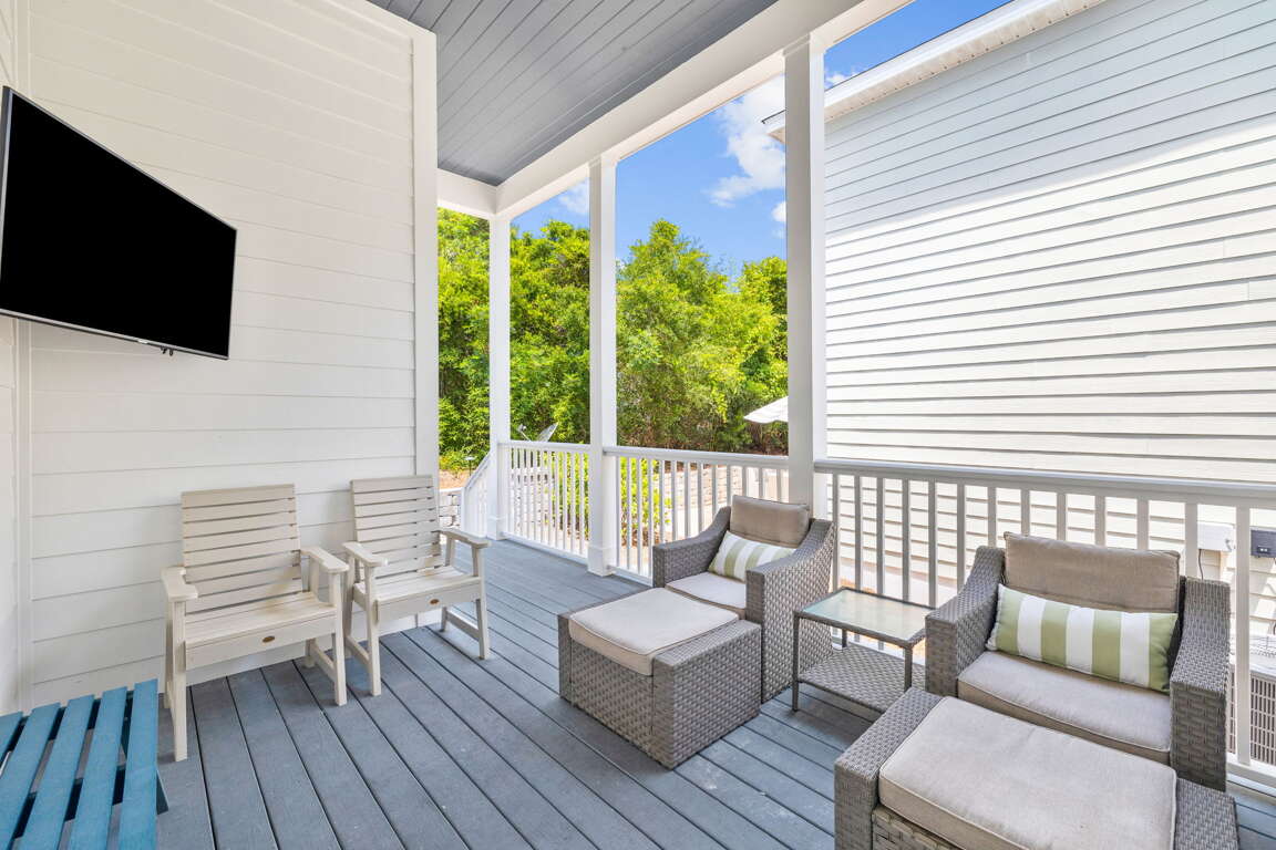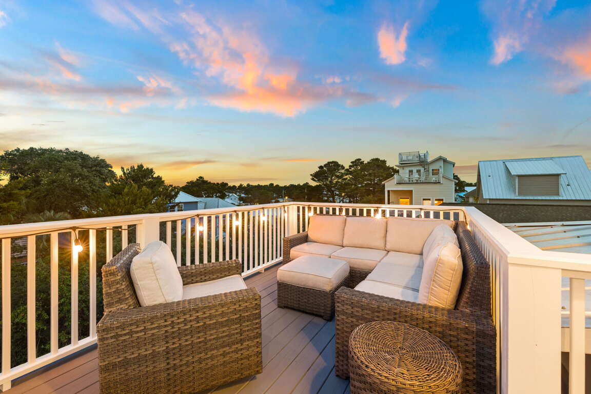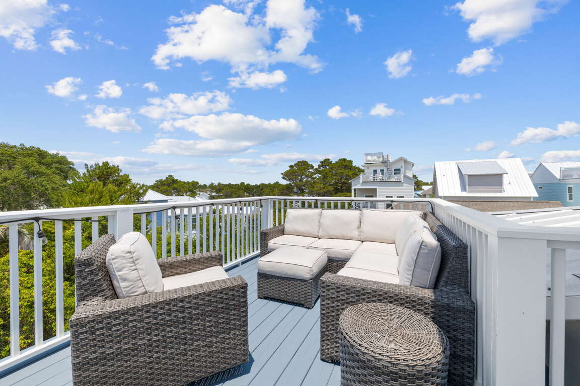 Outside, 30A Emerald Tower has plenty of spots to soak up the sparkling coastal sunshine and enjoy the gentle sea breezes, including a rooftop deck with breathtaking views and an alfresco living space with lounging space and an HDTV.