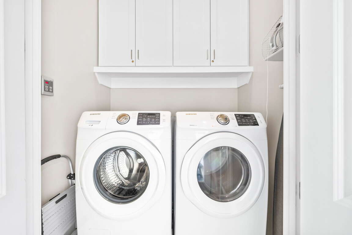 In the chef-inspired kitchen, the spacious, granite-topped island includes a high-end gas range top and is surrounded by crisp white cabinetry. The premier appliance suite includes a wall oven with a microwave oven, an efficient dishwasher, and a large stainless refrigerator. There’s even an HDTV mounted in the kitchen so no one misses anything- perfect for big game days!