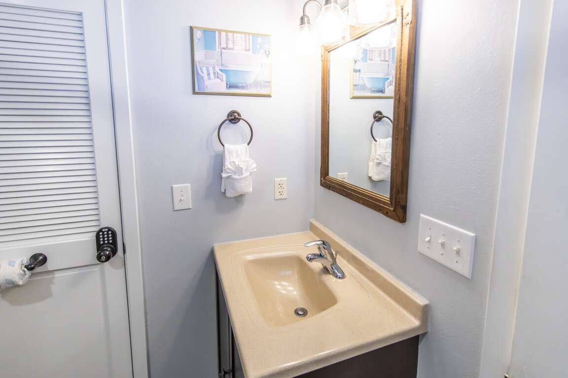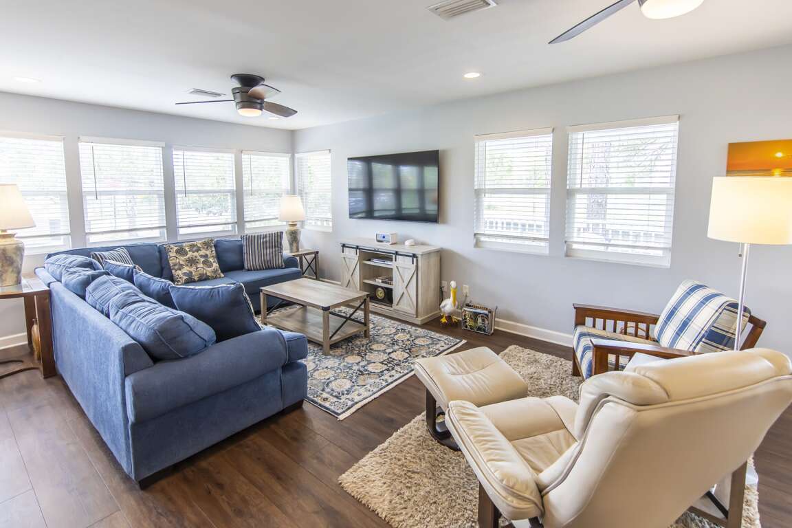 Each of the bedrooms is equipped with ultra-comfortable beds of all different sizes (including a kid’s bunk room with two twin-over-full-size bunk beds) plus each bedroom has its own flatscreen HDTV. The living space also has a large HDTV that’s perfect for family movie nights at home or catching the big game.