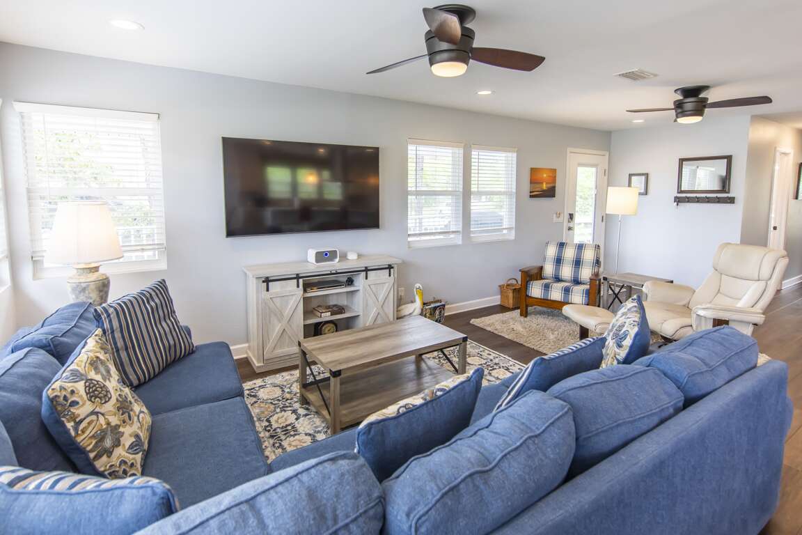 As we mentioned earlier, the location of Dune Treat is what makes this home shine. The charming exterior is welcoming and inviting, making you feel at home from the moment you arrive. Dune Treat is perfect for those travelers who don’t want to be right in the middle of everything, yet still want easy access to the local attractions and beautiful beaches.