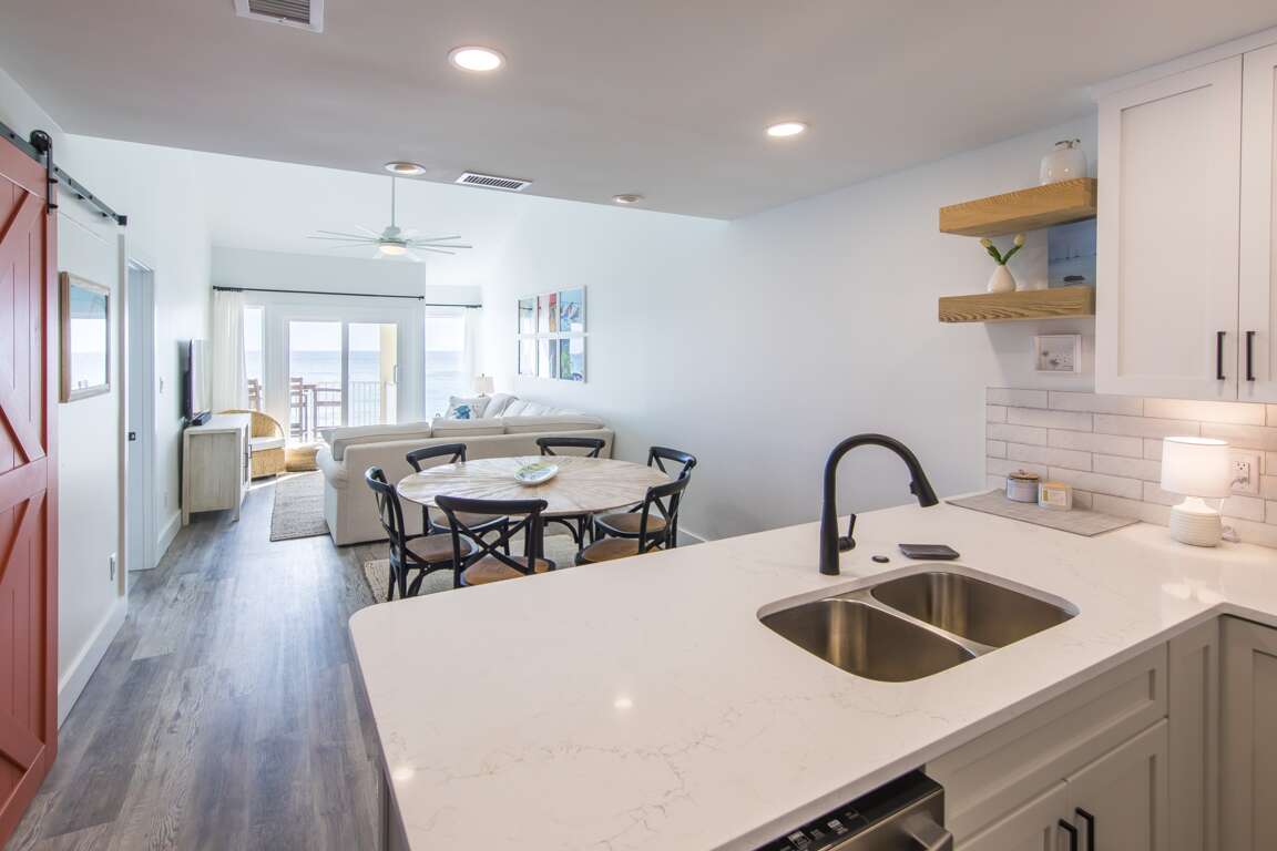 For anyone still needing a fix of sun and sand, the balcony area offers stunning views of the gulf. Bask in the sunshine against the soothing sounds of the sea kissing the shore. Sit and chat with a loved one while enjoying a refreshing beverage or light meal. How you use the space is up to you, but one thing's for sure: it doesn't get more zen than this!