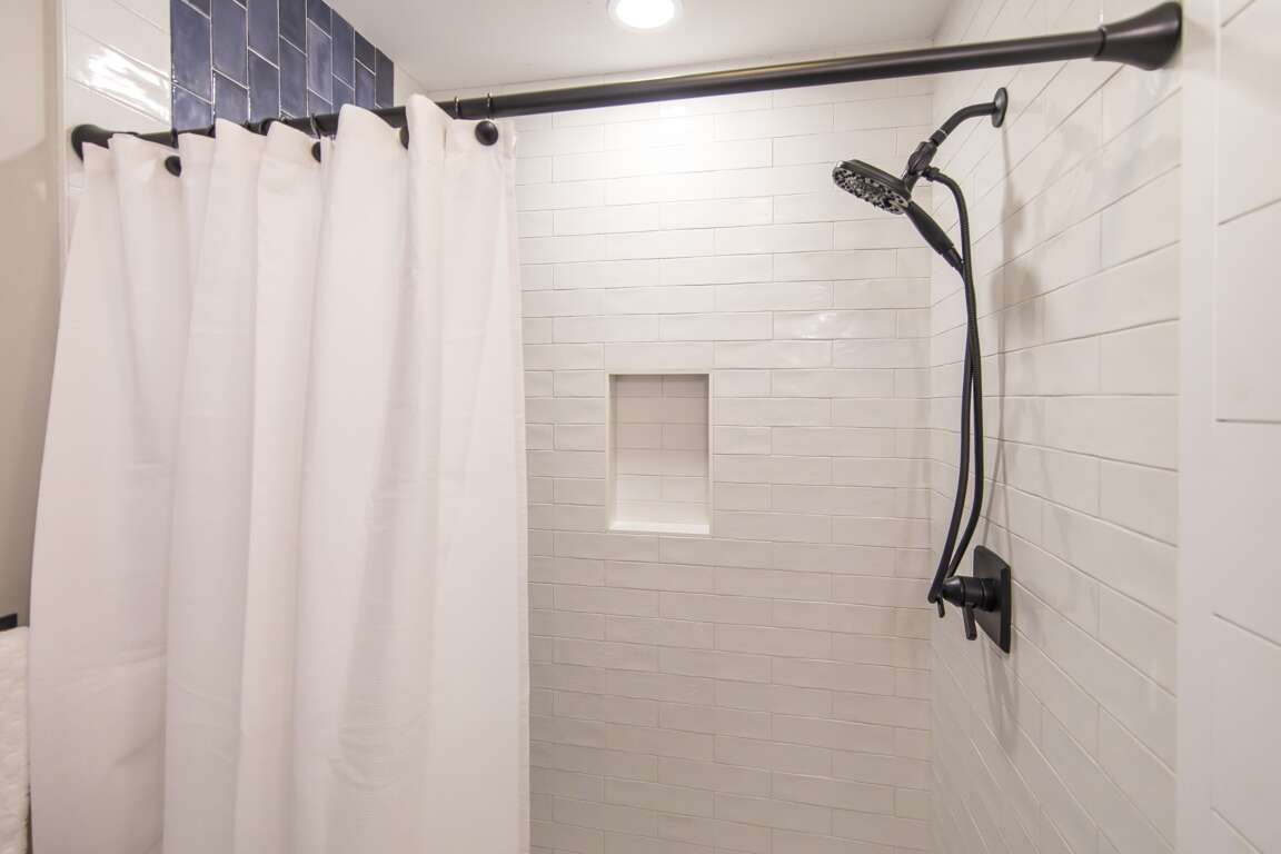Wash off any lingering sea salt in the spacious ensuite bathroom. With plenty of drawer space and a large mirror, it’s the perfect place for getting ready for a night on the town.