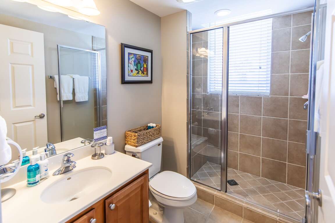 Wake up to spectacular beach views in the primary king suite, complete with private balcony access, a flat-screen TV, a walk-in closet, and a luxurious ensuite bathroom. Both guest bedrooms boast lovely resort views, super-comfy beds, flat-screen TVs, and their own private ensuite bathrooms.