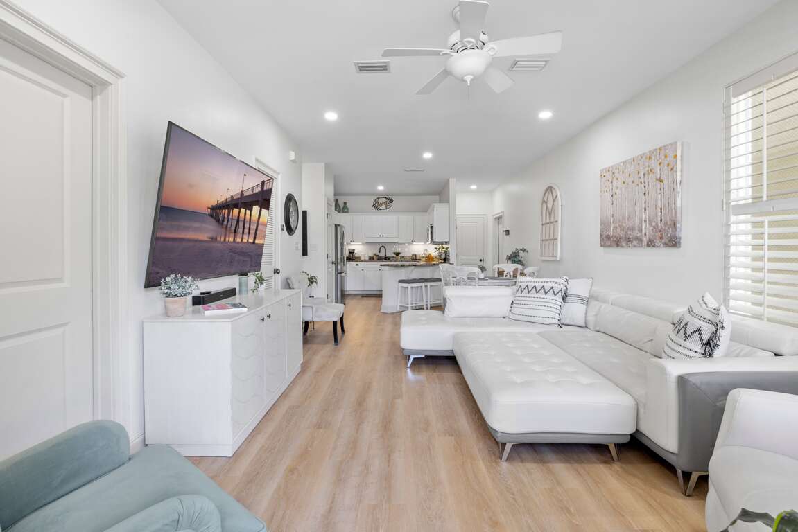 Step inside to discover a bright, open layout featuring clean lines, coastal-modern décor, and thoughtful finishes throughout. The fully equipped kitchen flows seamlessly into a stylish living area— perfect for unwinding after a day in the sun. Each bedroom offers a tranquil escape, with plush bedding and spa-inspired bathrooms designed for ultimate comfort.