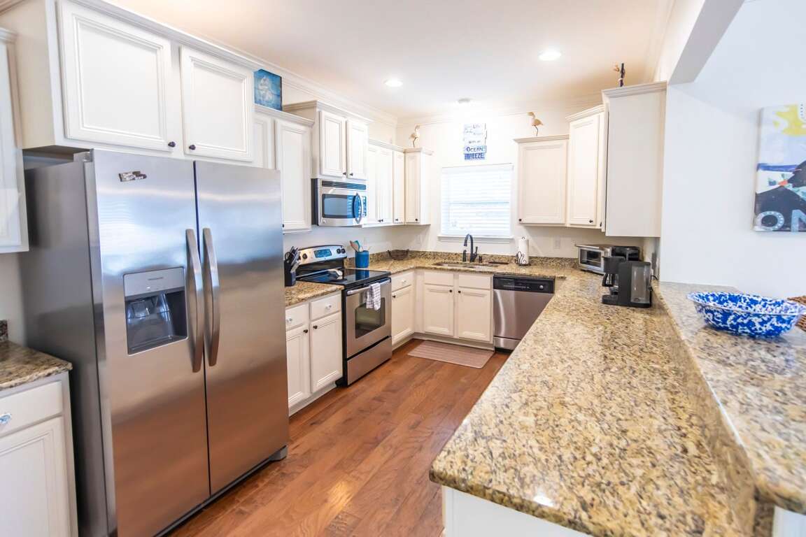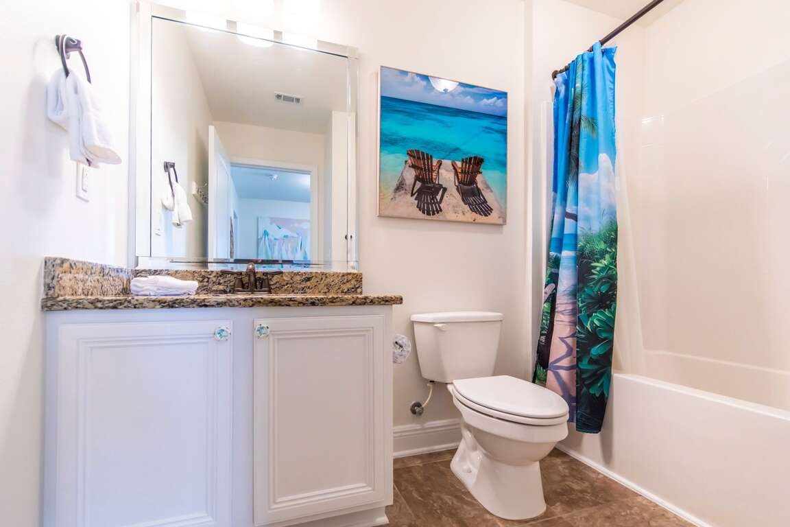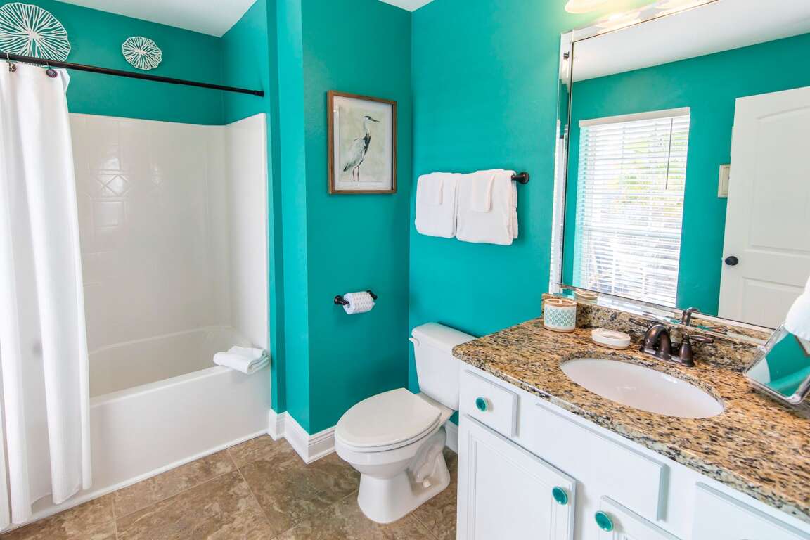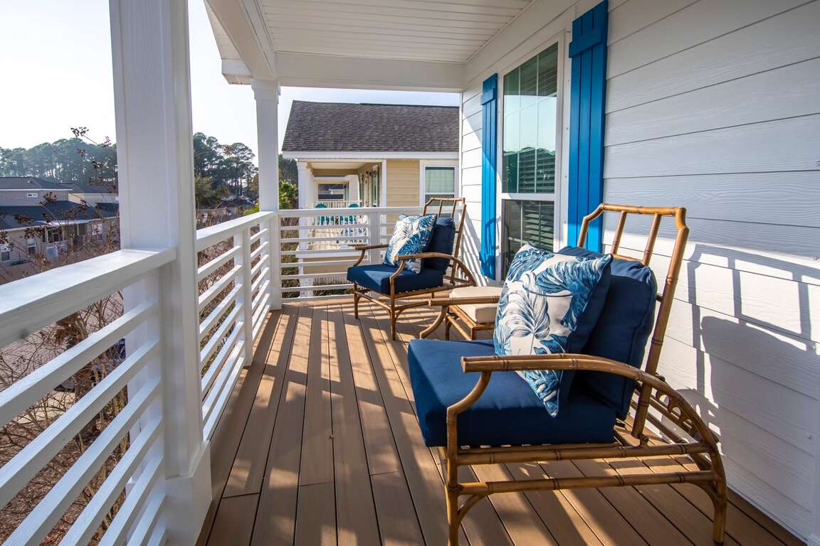 Upstairs, all three bedrooms provide comfort and style, including two king bedrooms adorned with calming coastal décor and a third bedroom with a bunk + twin, accented with playful cobalt blue touches. Two full bathrooms with granite finishes ensure everyone has space to unwind. Step out onto the large private balcony to enjoy your morning coffee or an afternoon breeze drifting in from the Gulf.