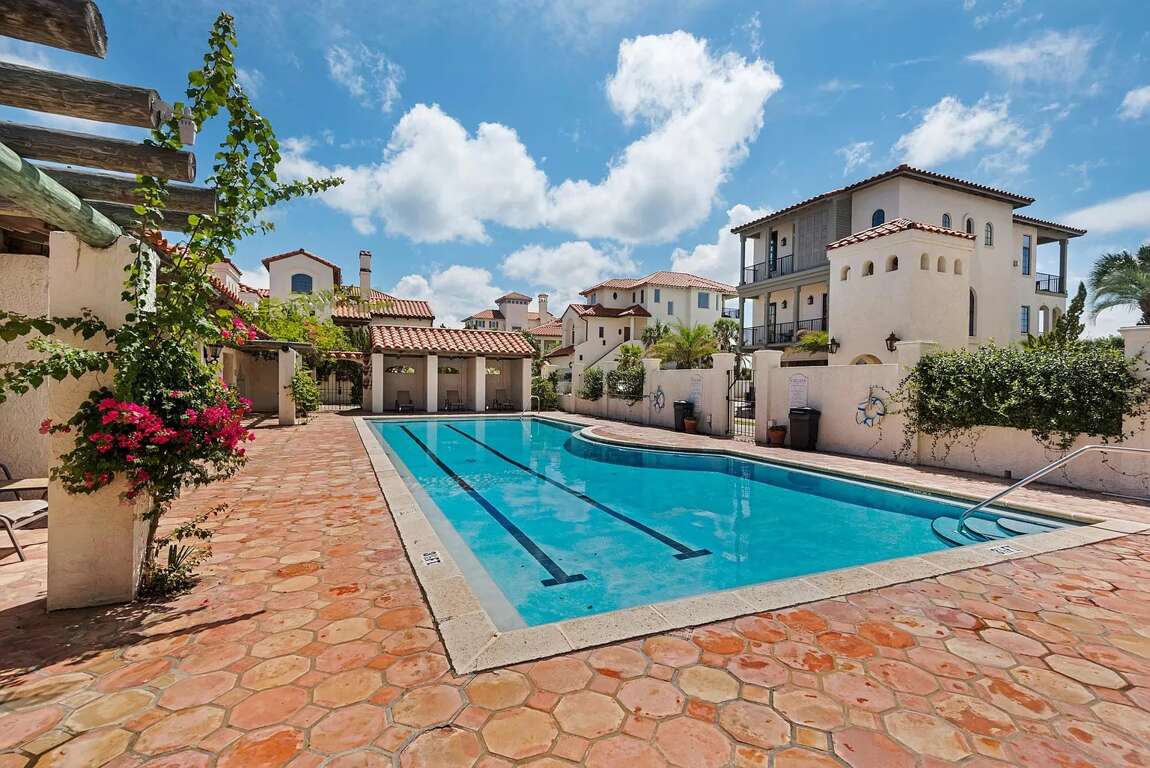 Gulf-front house in Santa Rosa Beach with 5 bedrooms, private gated beach access, and a community pool in Vizcaya near 30A dining, shops, and the bike path.