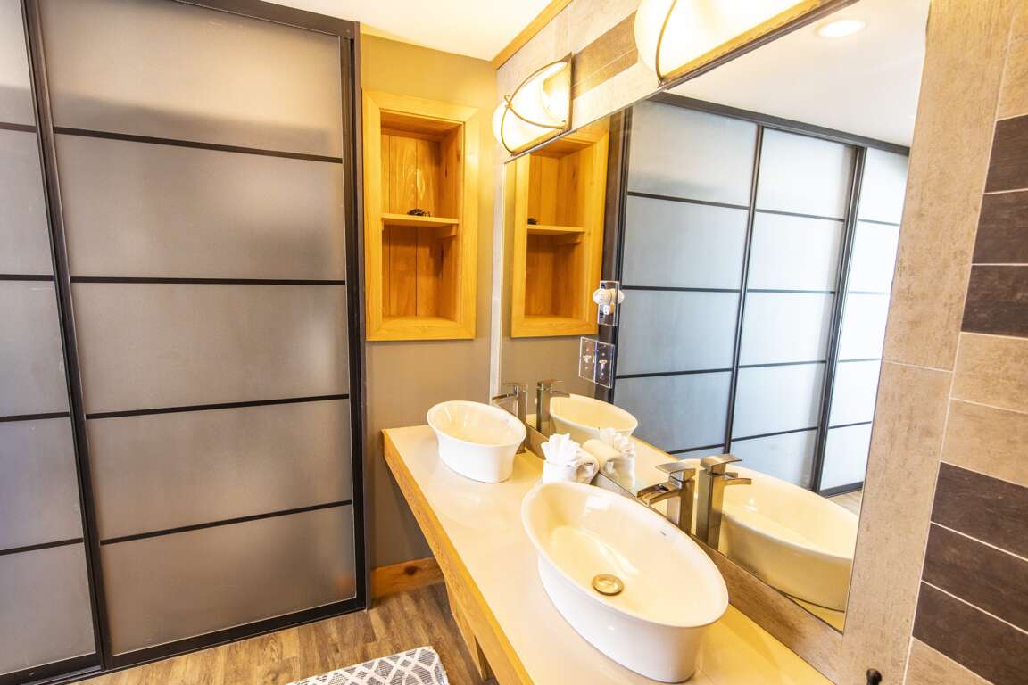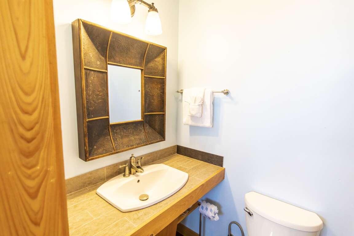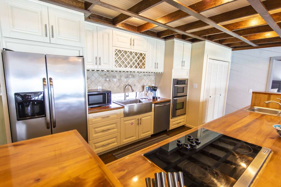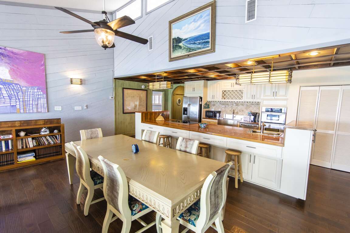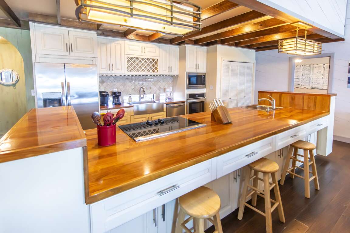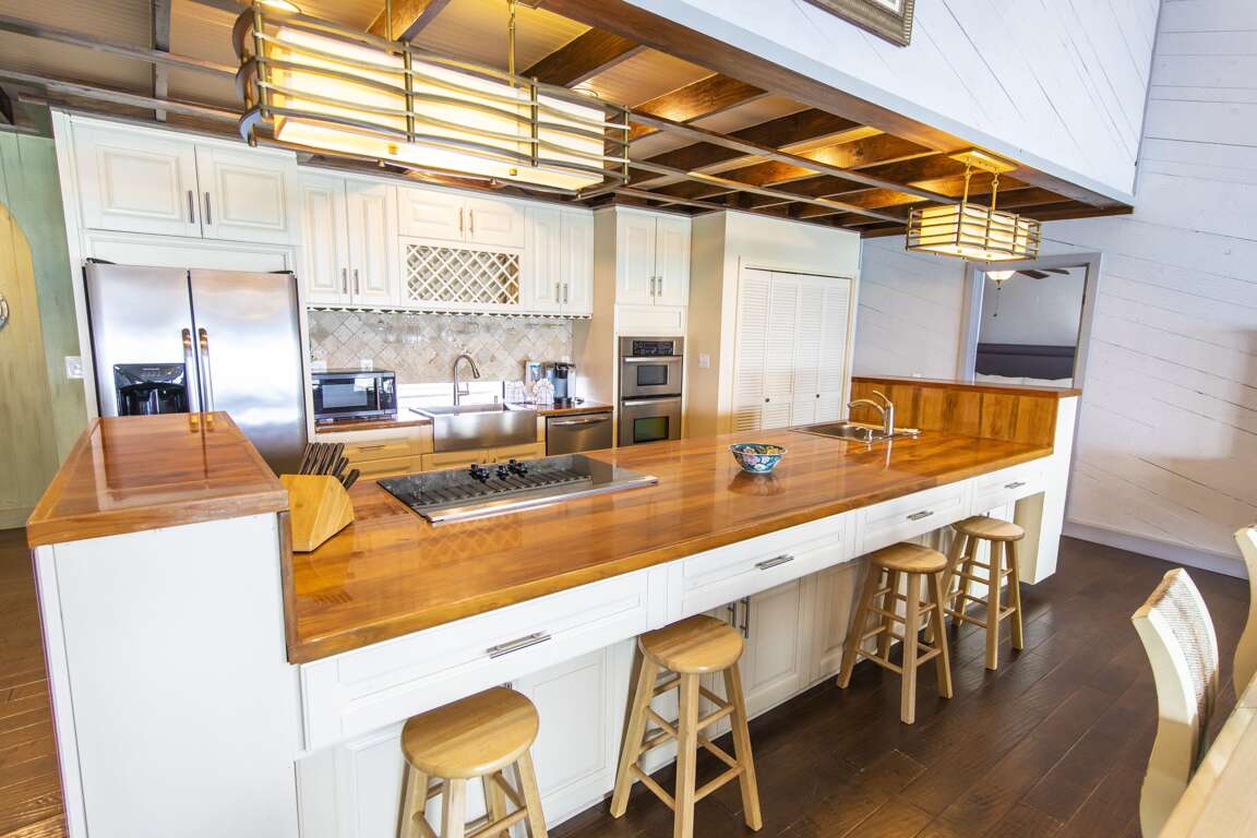 - Gather around the oversized island in the kitchen for dining and socializing.