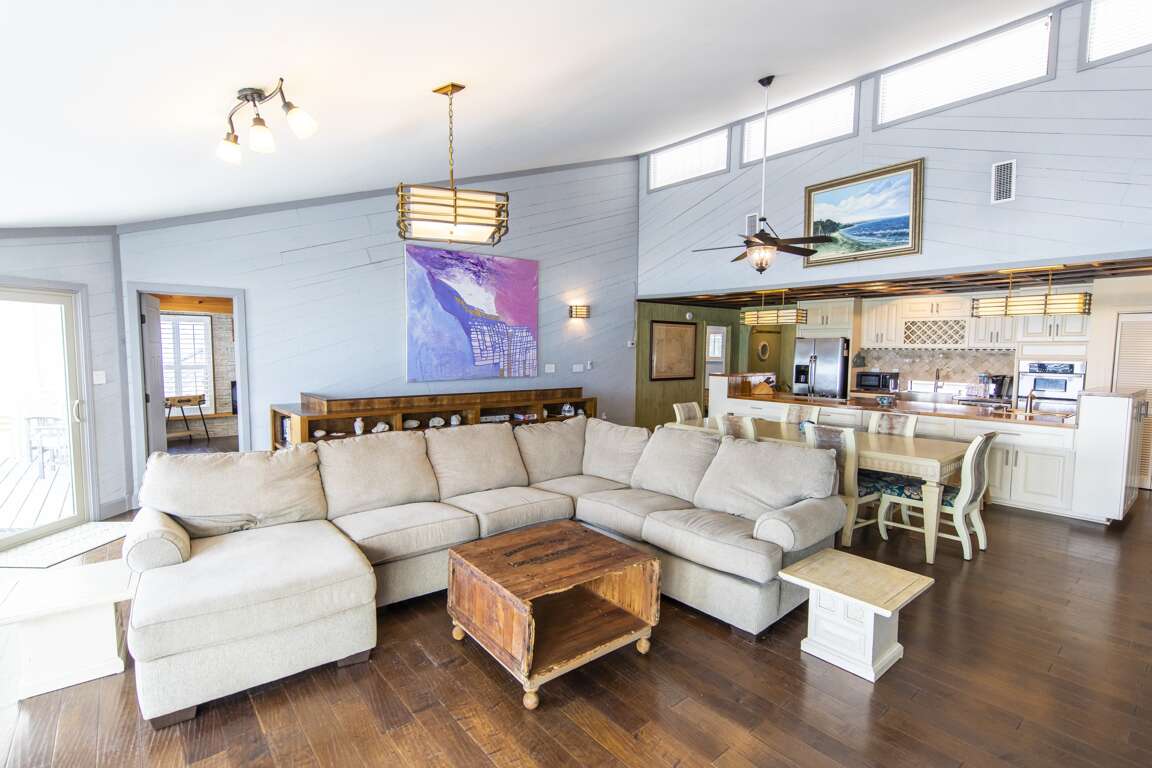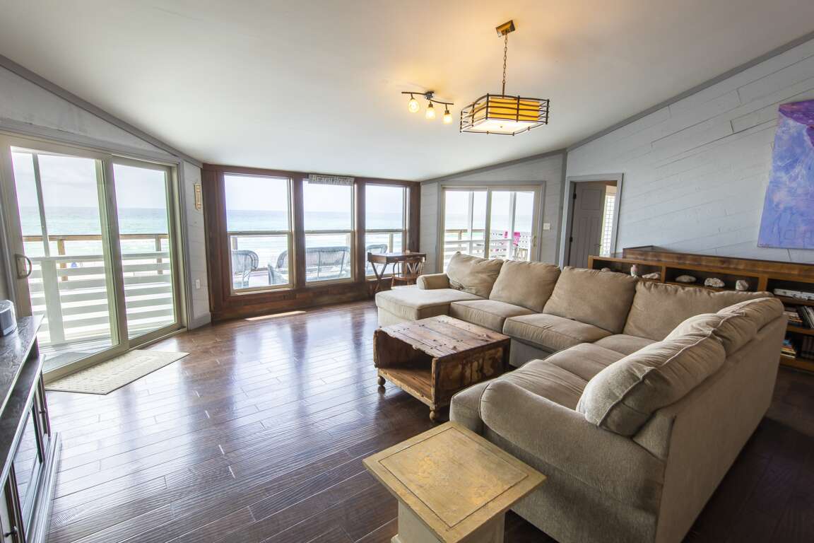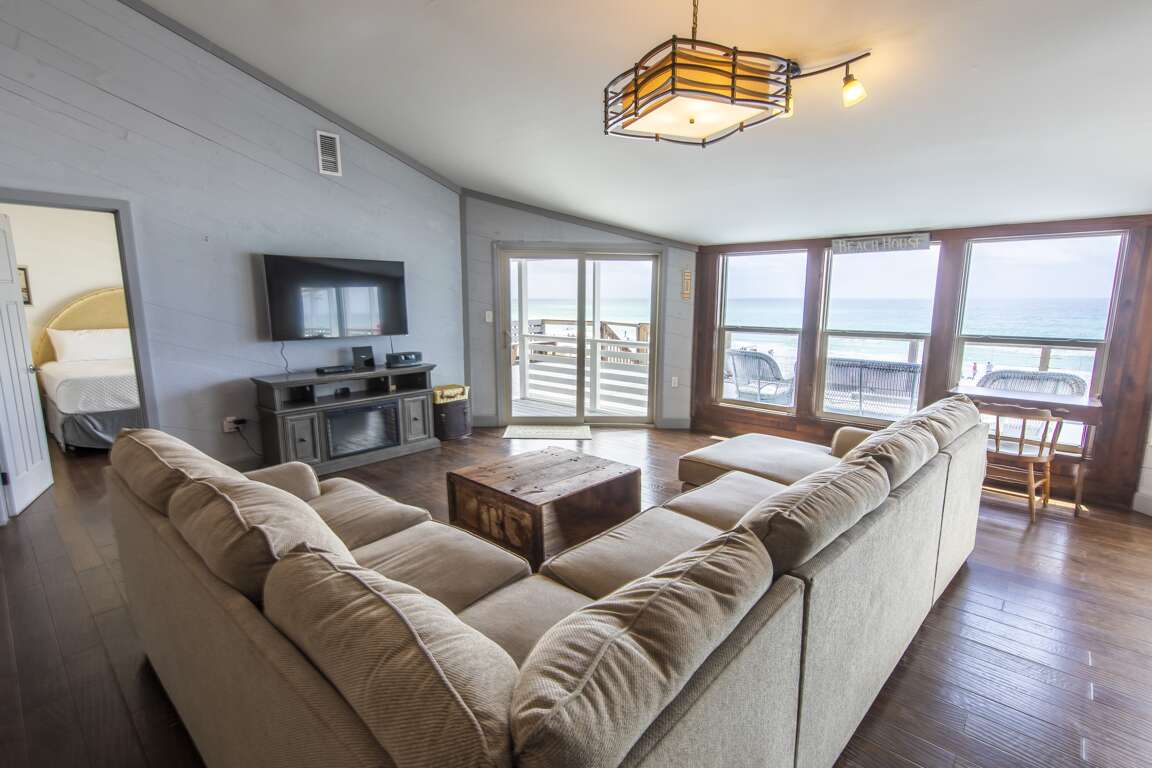 Indulge in the epitome of upscale beachfront living at our luxurious 5-bedroom beach house in Dune Allen Beach, FL, accommodating up to 11 guests. Featuring a grand cathedral ceiling in the living area, convenient beach access from the backyard, and panoramic Gulf views from large windows, this property promises an unparalleled vacation experience. Enjoy the oversized island in the kitchen, large leather sectional for cozy movie nights, and family-friendly accommodations perfect for beach vacations. Embrace comfort and entertainment with an elegant ambiance and emphasis on relaxation. Discover more about this delightful stay with beautiful vistas and entertainment options.