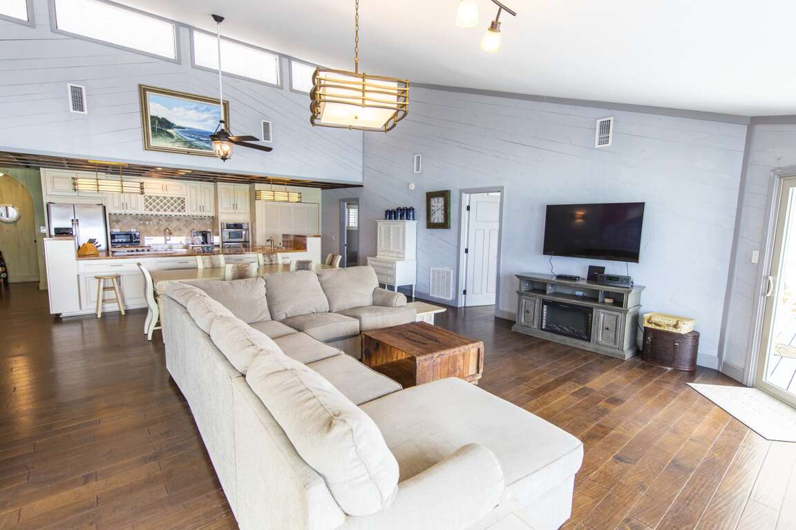 Featuring a grand cathedral ceiling in the living area, the beach house in Dune Allen Beach, FL offers a luxurious ambiance for guests seeking comfort and elegance. The expansive ceilings create a sense of openness and grandeur, enhancing the overall spacious feel of the property. Additionally, this beach house provides convenient beach access from the backyard, allowing guests to easily enjoy the beautiful shores of the Gulf of Mexico. The combination of the cathedral ceilings and proximity to the beach guarantees a truly luxurious experience for those looking to unwind and relax in a stylish setting. This property is designed to cater to individuals who appreciate the freedom of beachfront living with upscale amenities.