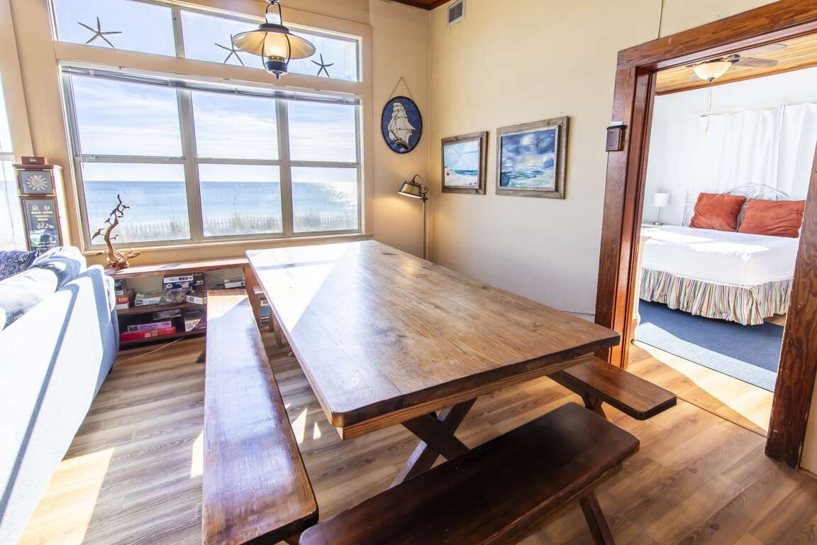 Featuring a charming beachfront 1950s Florida beach cottage with four bedrooms and two full bathrooms, the vacation home located at 422 Blue Mountain Rd. in Blue Mountain Beach, Florida offers a cozy retreat for up to eight guests. The rooms come equipped with modern amenities such as flat-screen TVs, high-speed Wi-Fi, and plush bedding to guarantee a comfortable stay. The decor style embraces a mix of vintage coastal charm and contemporary touches, creating a relaxing and inviting atmosphere. Guests can enjoy the coastal vibe with beach-inspired accents, soothing color palettes, and cozy furnishings that reflect the laid-back Florida lifestyle. Whether lounging in the living room or preparing meals in the fully equipped kitchen, guests will appreciate the blend of style and comfort in this charming beach cottage.