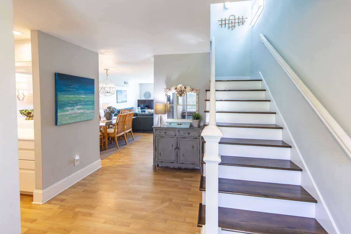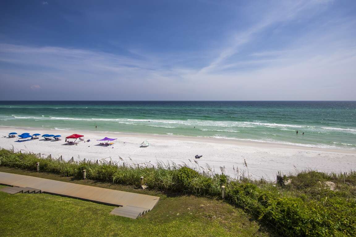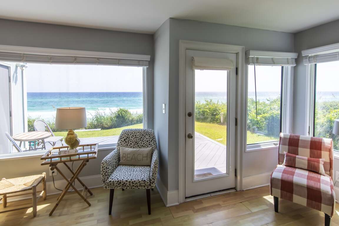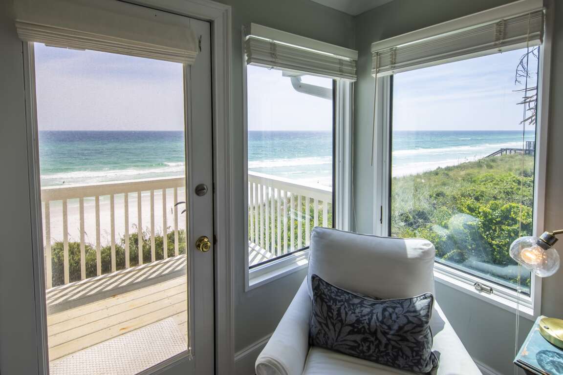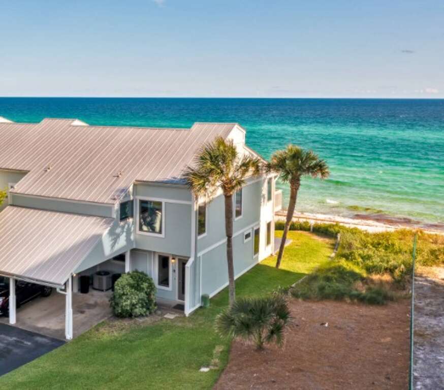 This Gulf-front. light, bright, and airy townhouse is located in the laid-back beach community of Blue Mountain Beach and it’s about as close to the beach as you can get. With a large picture window on the first floor, and a spacious patio overlooking the Gulf, you’ll be mesmerized by the sound of the waves rolling in.