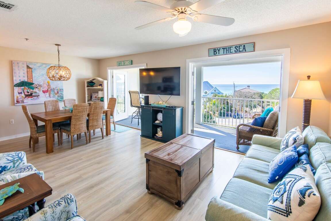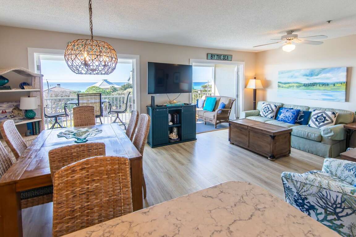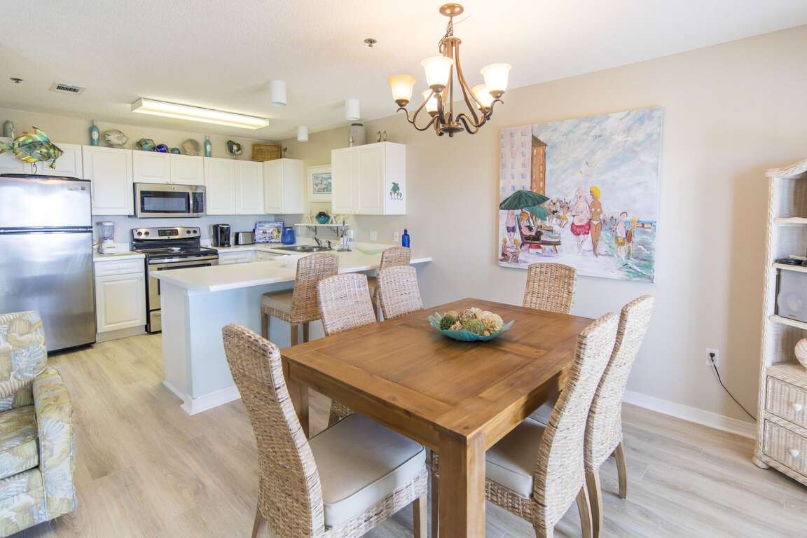 Located at 144 Spires Lane #404, the Gulf Place Caribbean vacation condo offers 2 bedrooms accommodating up to 6 guests. This beachfront location provides a serene setting for families seeking relaxation and fun. The family-friendly accommodations guarantee a comfortable stay with ample space for everyone. With 2 full bathrooms and 1091 sqft. of living space, guests can enjoy a cozy and inviting atmosphere. Situated in the Gulf Place Town Center in Dune Allen Beach, guests have easy access to nearby restaurants, shops, and art galleries. The property's 2 king beds and bunk beds cater to families, while the open kitchen, dining, and living area are perfect for family gatherings.