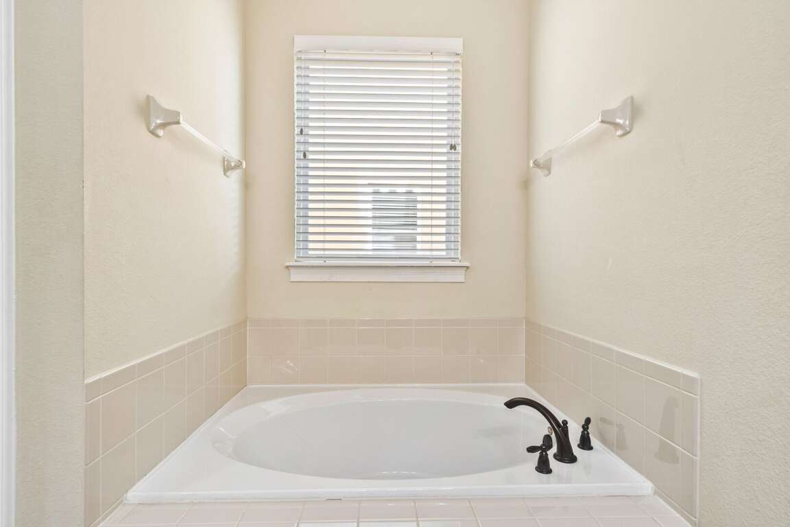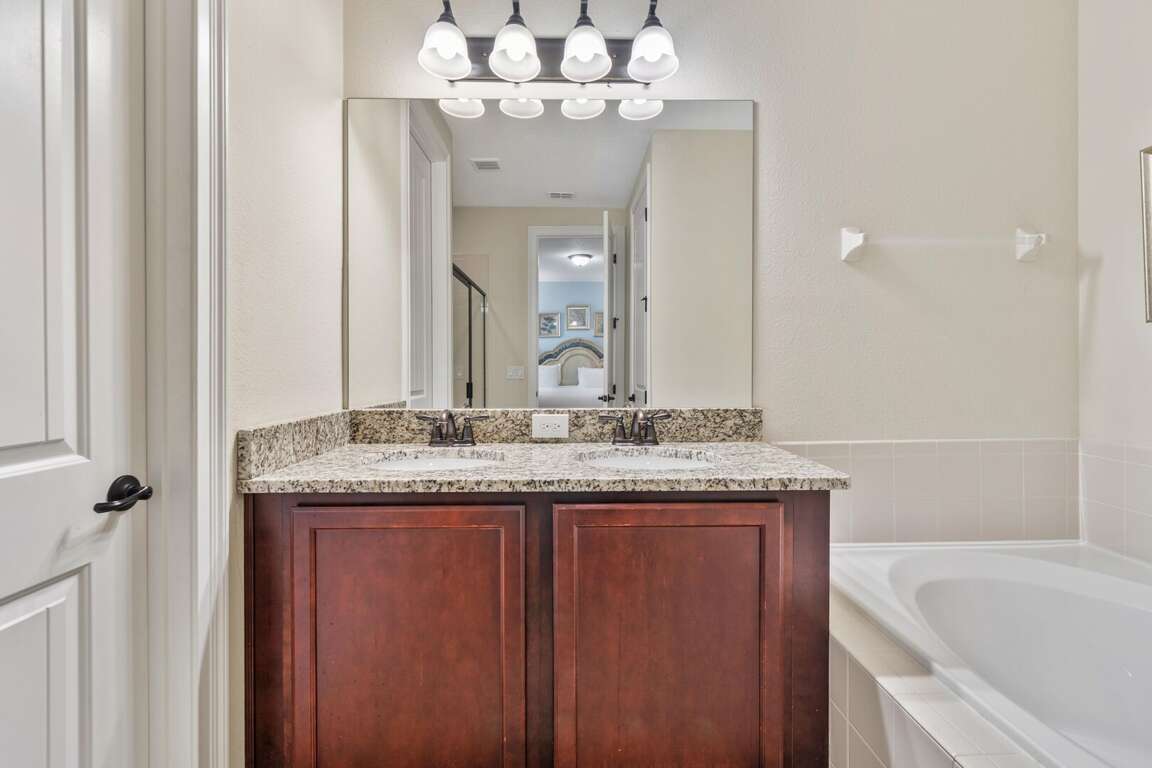 Bathroom 2 – 1st floor in Bedroom 2, dual sinks, glass enclosed shower, soaker tub<br />