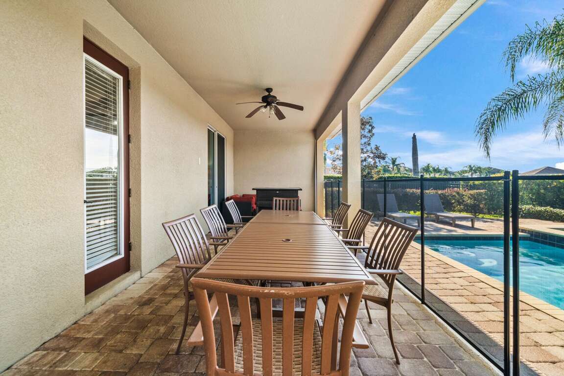 Outside the glass sliding door, you’ll find your own resort-style pool, complete with loungers for sunbathing or afternoon relaxation. A covered lanai with a comfortable seating area is perfect for enjoying meals, morning coffee, or evening conversations while taking in Florida’s finest sunrises and sunsets.<br />